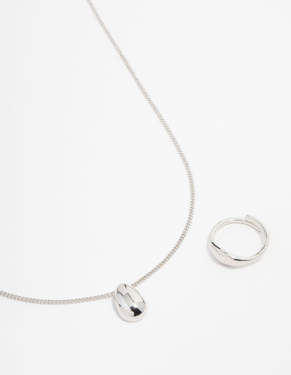 Elevate your style effortlessly with this striking necklace and ring set crafted from durable silver-toned. Ideal for a refined and elegant look, the minimalistic design of the ring and pendant necklace combo adds a clean and sophisticated aesthetic.