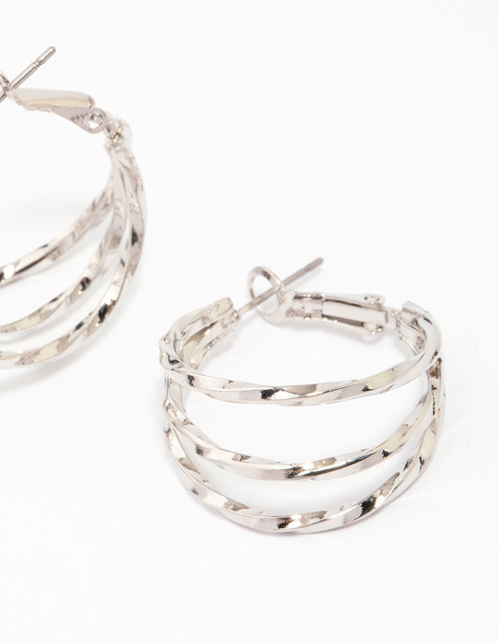 Curate a maximalist ear stack with these simple, silver-toned hoop earrings. These lovely hoops feature a trio of rows, perfect for achieving a layered effect.