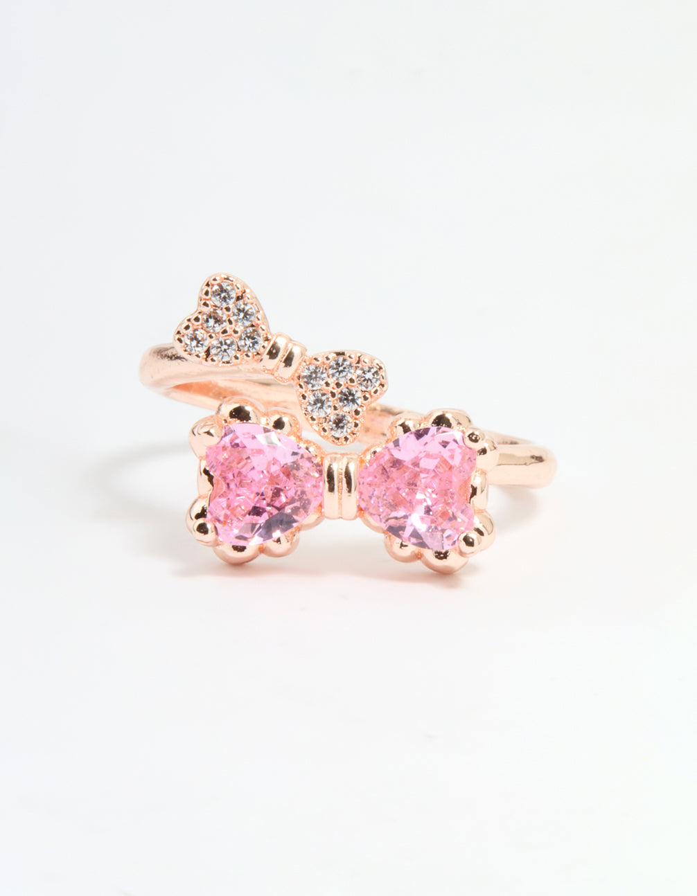 Rose Gold Cubic Zirconia Double Dainty Bow Ring