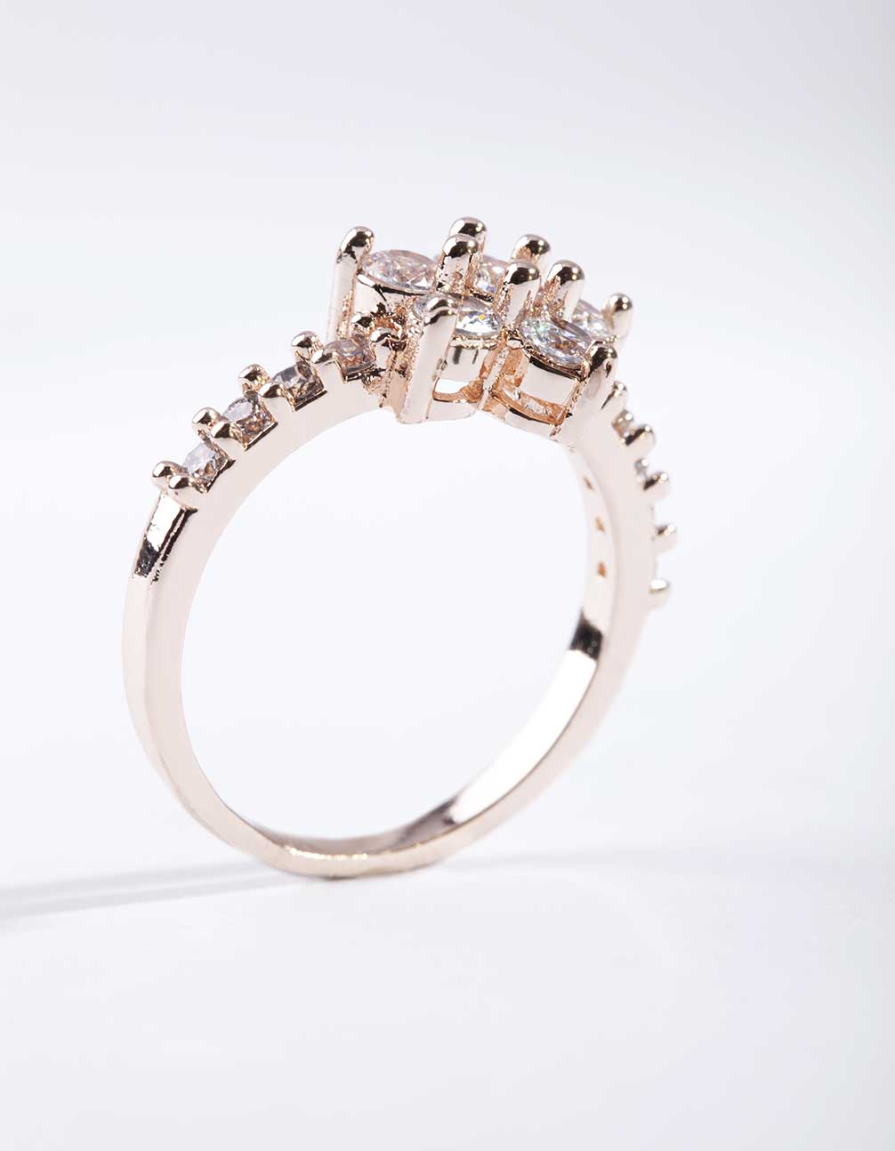 This elegant ring features sparkling cubic zirconia stones in a floral design. Crafted from rose gold metal, it adds subtle glitz to any outfit. The feminine flower motif and timeless rose gold finish make it a chic statement piece.