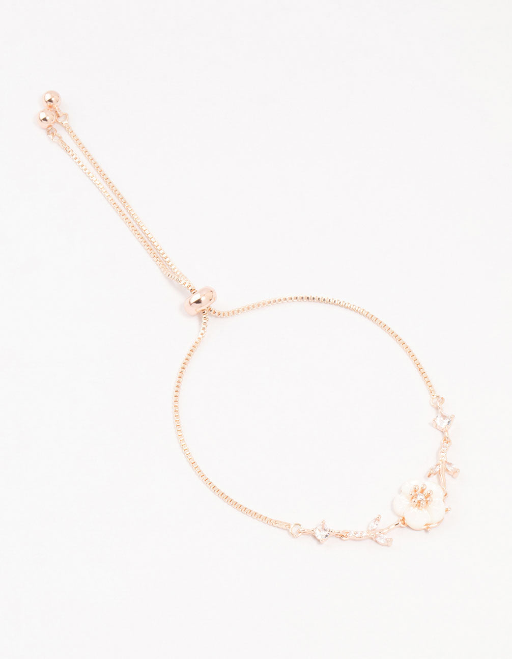 Rose Gold Cubic Zirconia Flower & Vine Toggle Bracelet