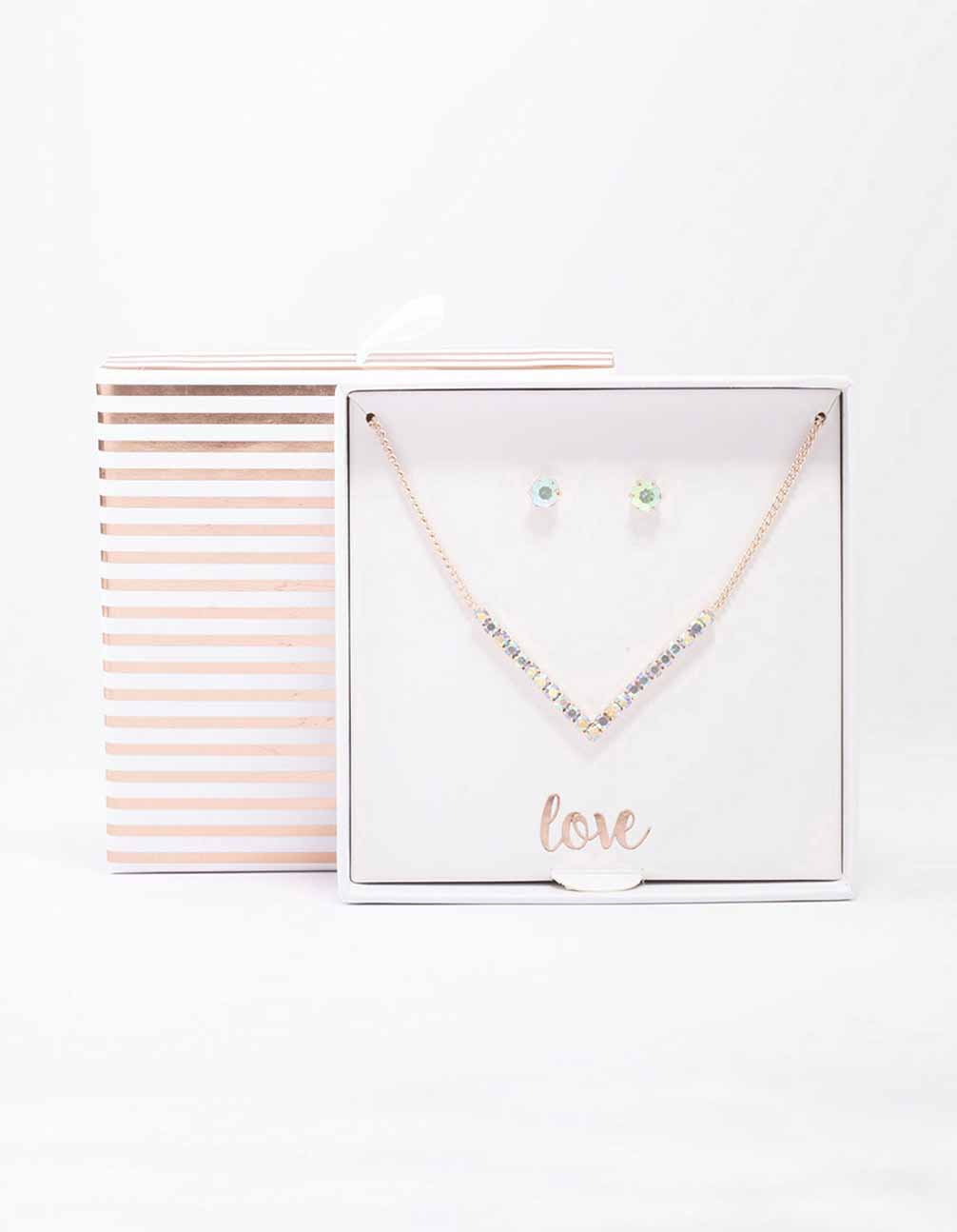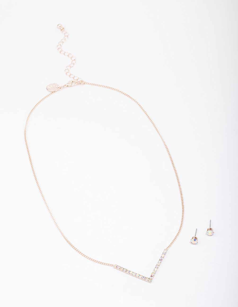 Rose Gold Cubic Zirconia V-Necklace & Stud Earrings Pack