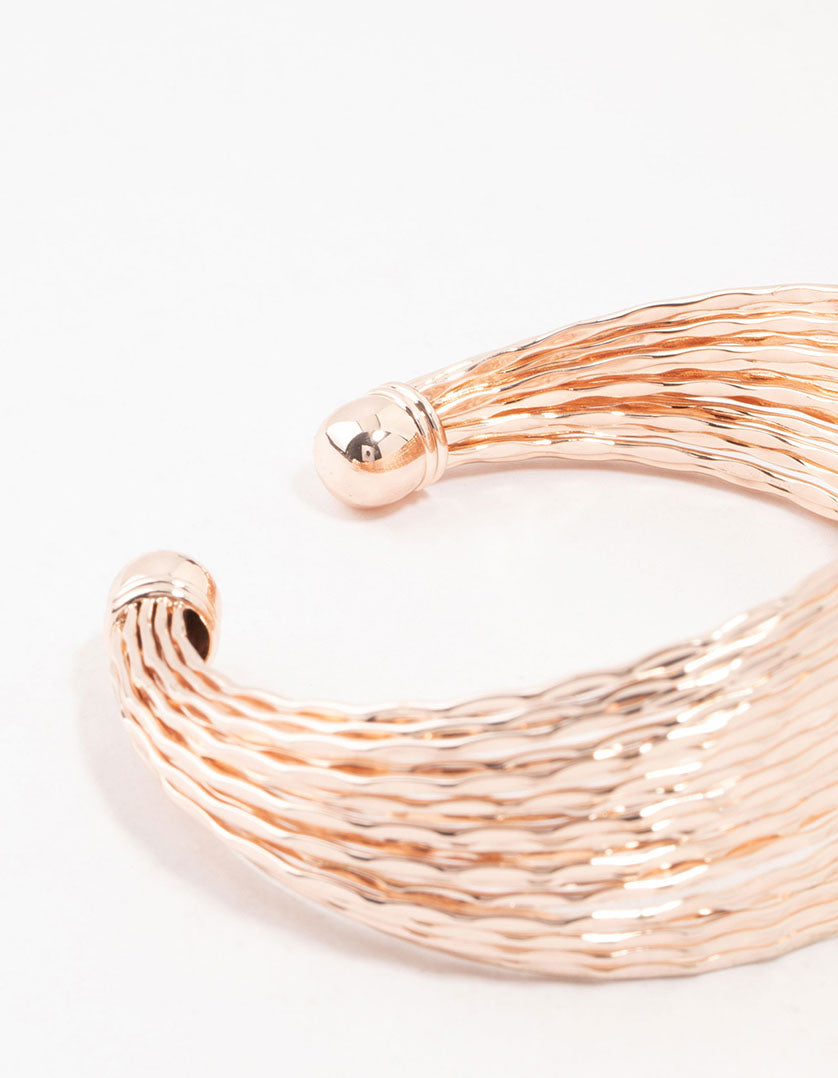 Shine bright with this Rose Gold Plated Diamante Wrist Cuff! Its dazzling, intertwined strands catch the light and turn heads. Perfect for adding instant glamour and sophistication to any outfit.