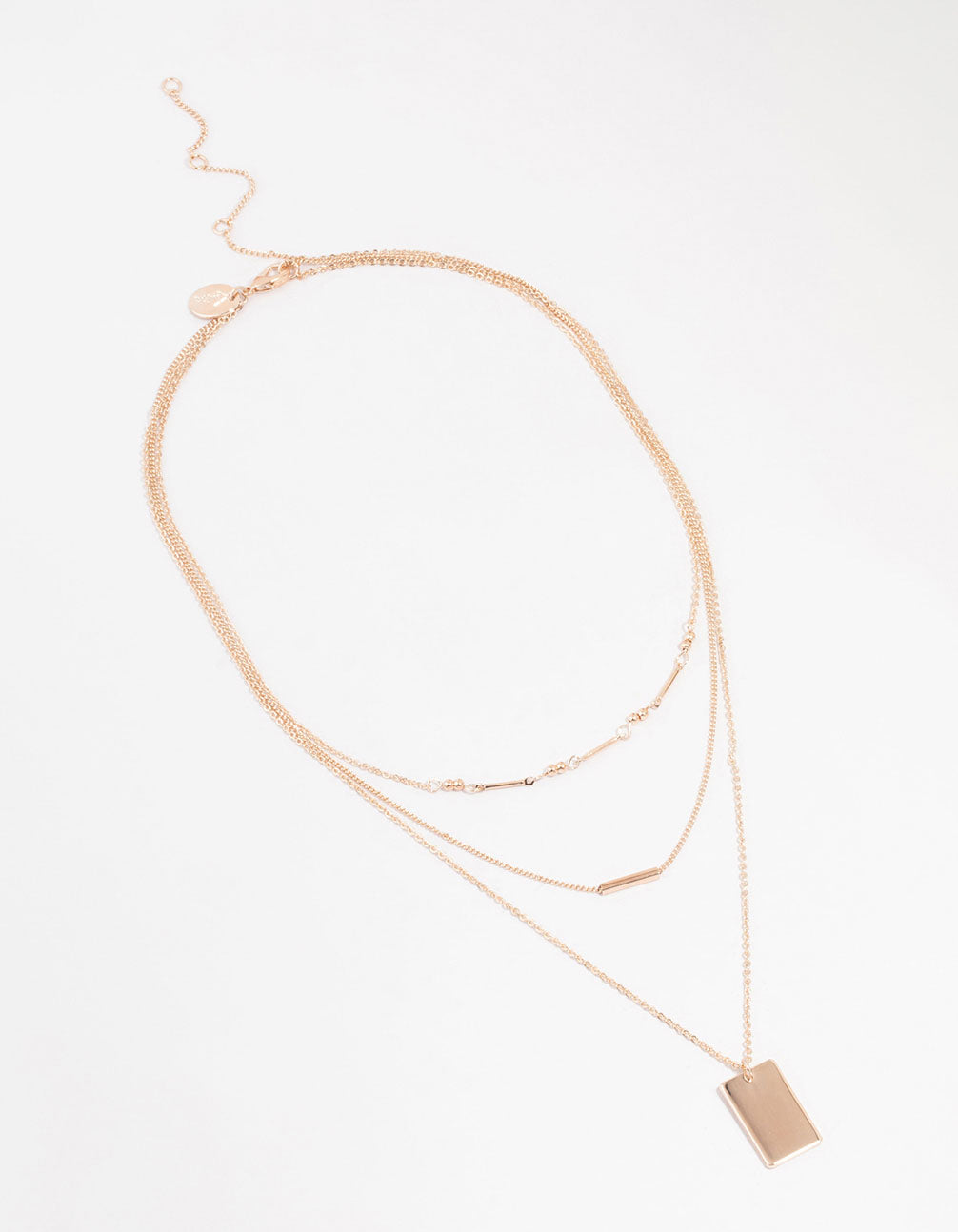Rose Gold Plated Dainty Rectangle Layered Necklace