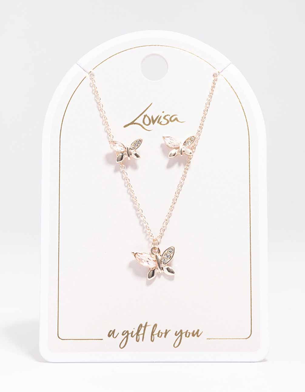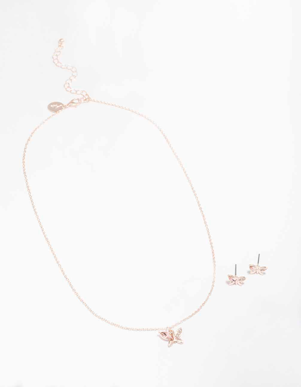 Rose Gold Diamante Butterfly Necklace & Stud Earring Set Rose Gold Diamante Butterfly Necklace & Stud Earring Set Rose Gold Diamante Butterfly Necklace & Stud Earring Set