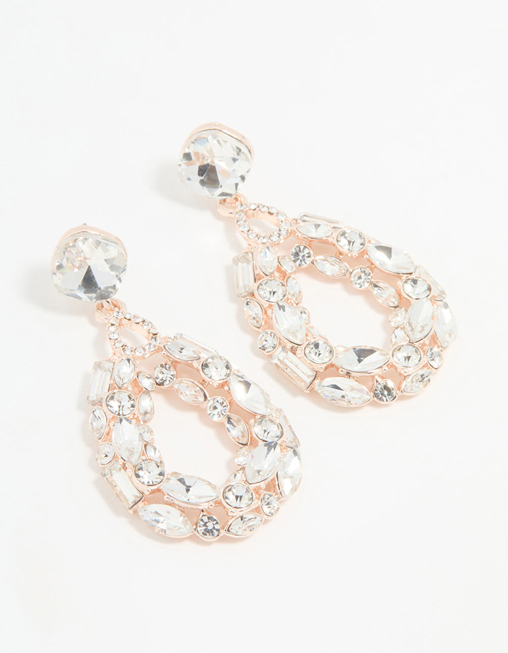 Rose Gold Diamante Hollow Oval Drop Earrings