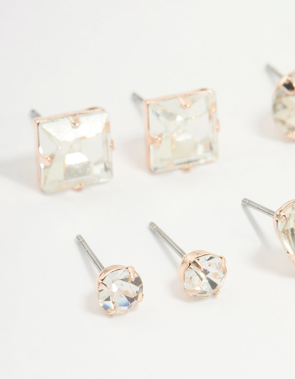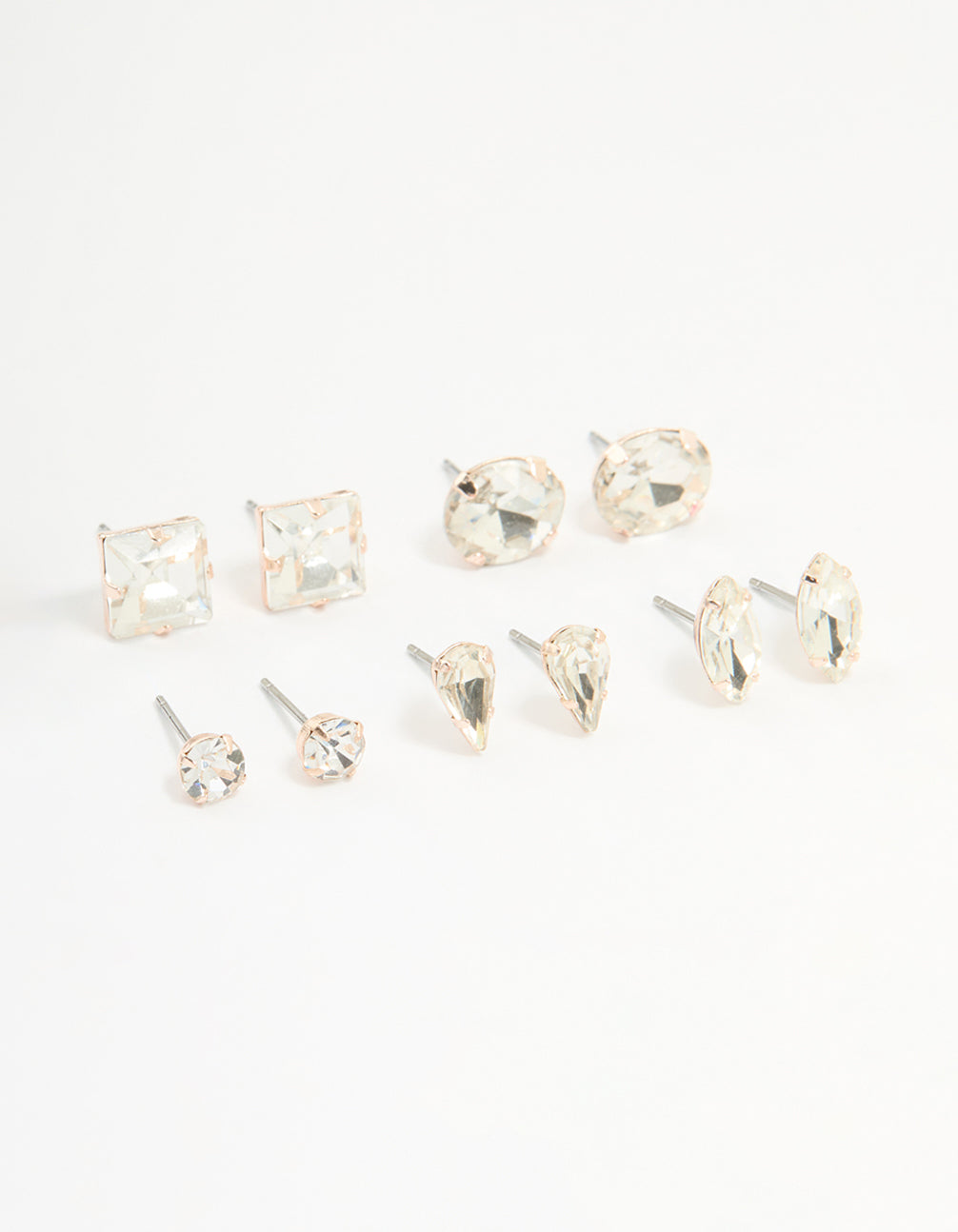 Rose Gold Diamante Mixed Cut Stud Earrings 5-Pack