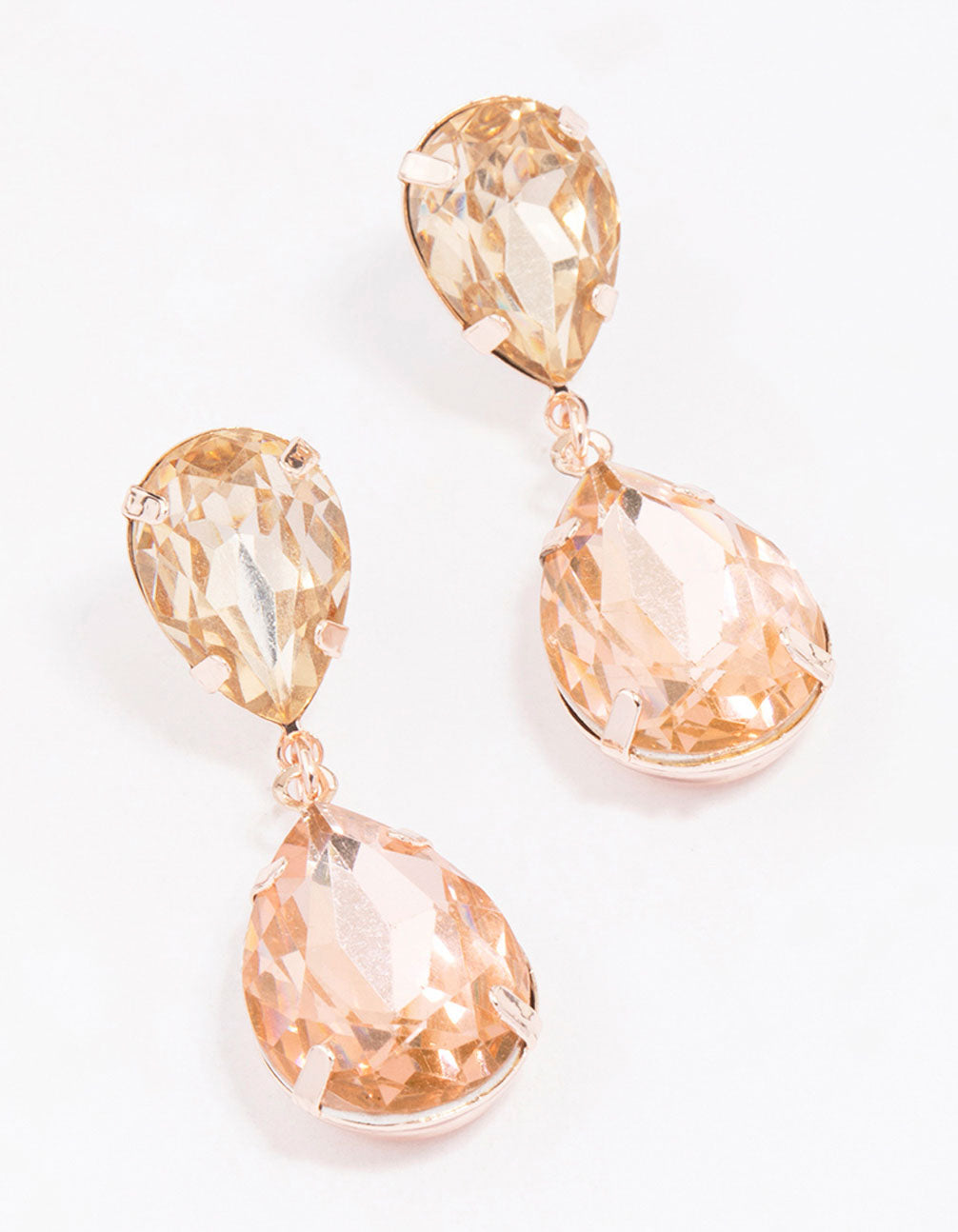 Channel elegance with these gorgeous, rose gold drop earrings. These unique drops feature a rose gold setting and double pear silhouette, crafted from blush-coloured crystals for a glamorous touch.