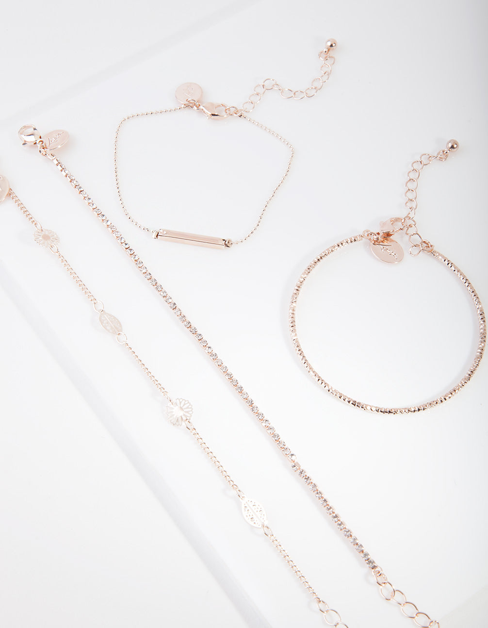 Enhance your style with this decorative rose-gold-toned bracelet set
