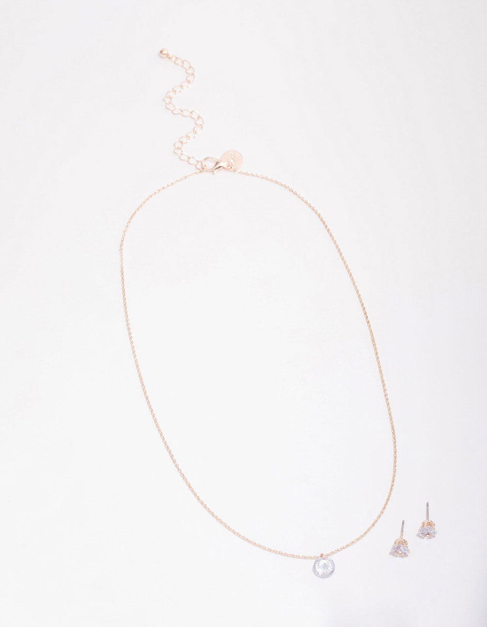 This matching, rose gold jewellery set features cubic zirconia crystals for a touch of sparkle.