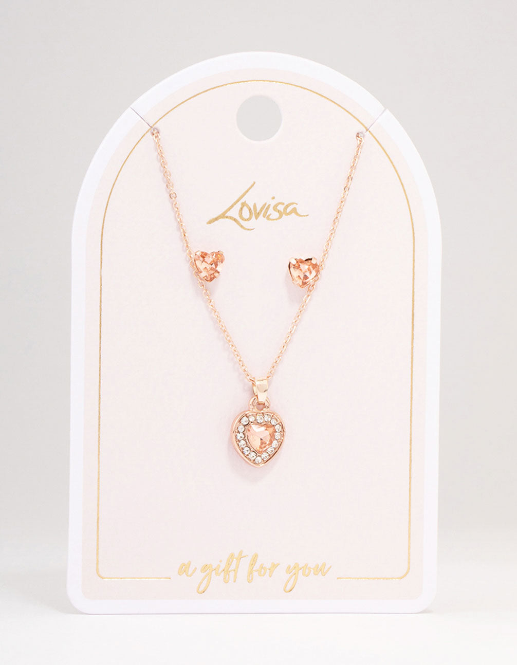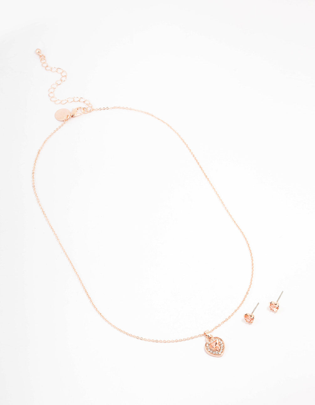 Rose Gold Heart Diamante Halo Jewellery Set