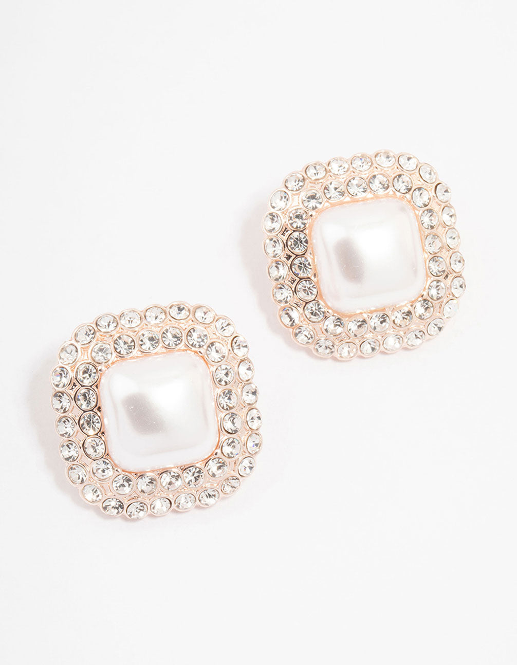 Rose Gold Large Pearl & Diamante Stud Earrings