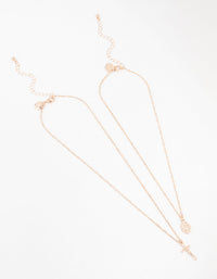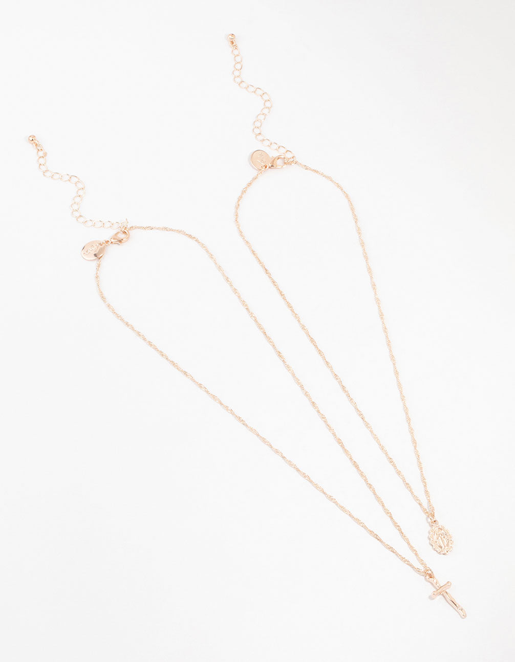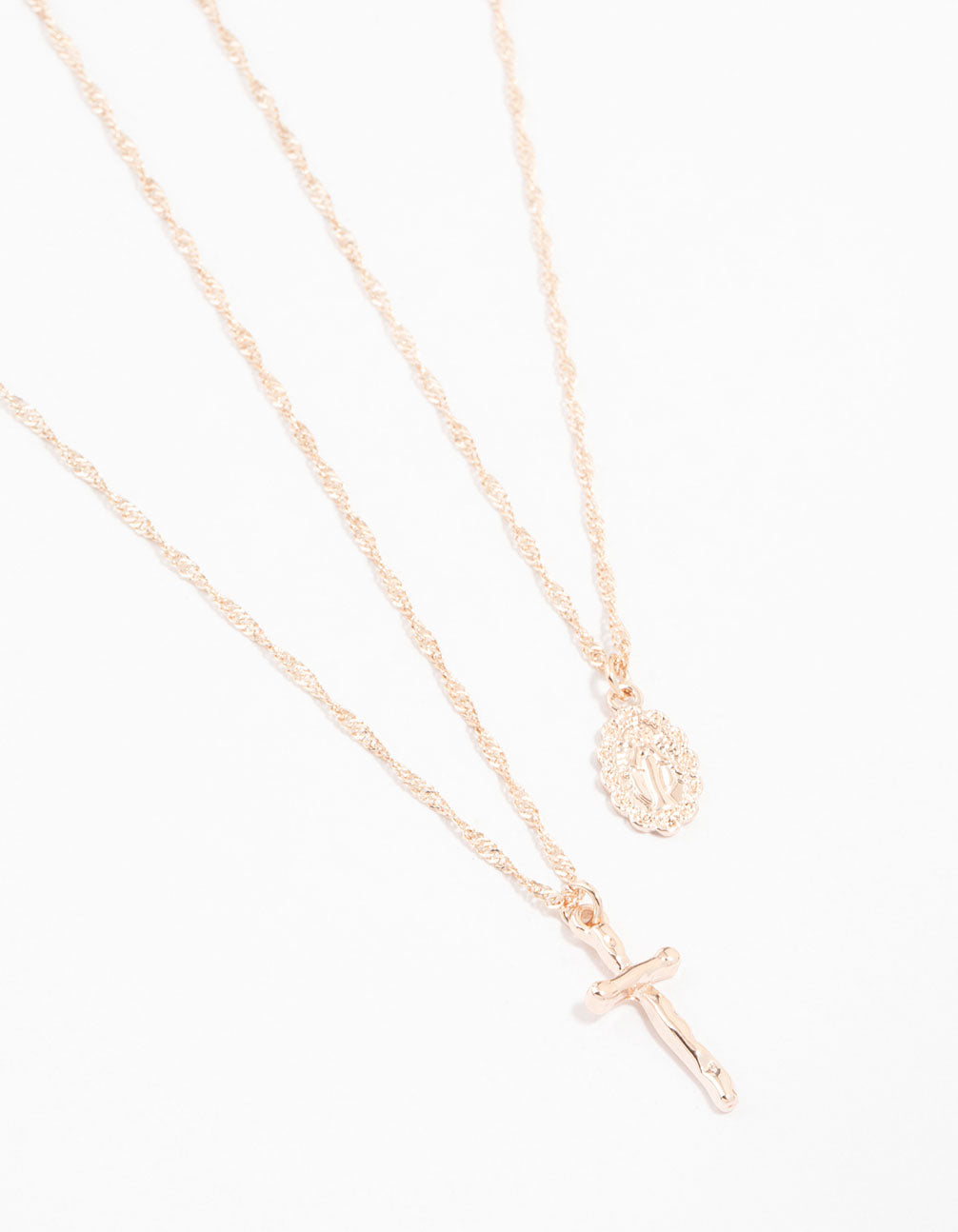 Rose Gold Plated Mary Hammered Cross Necklaces 2-Pack
