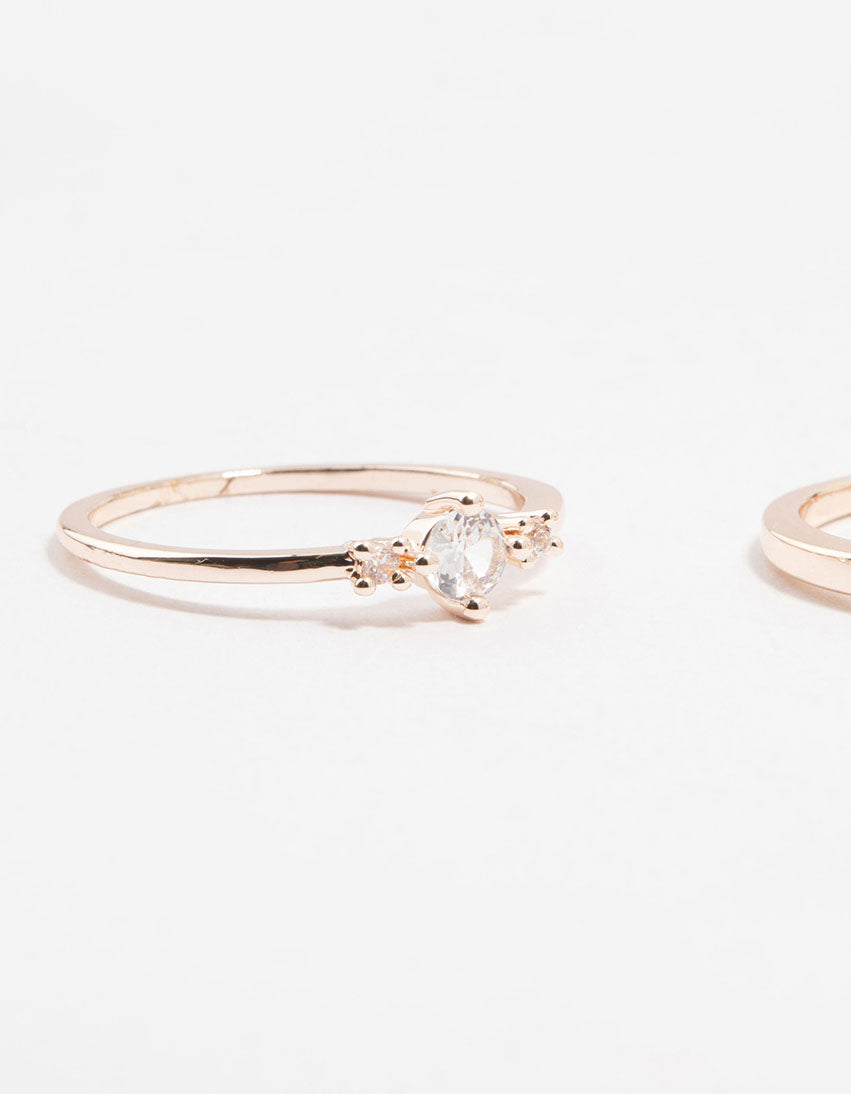 Rose Gold Plated Mixed Shape Cubic Zirconia Ring Pack