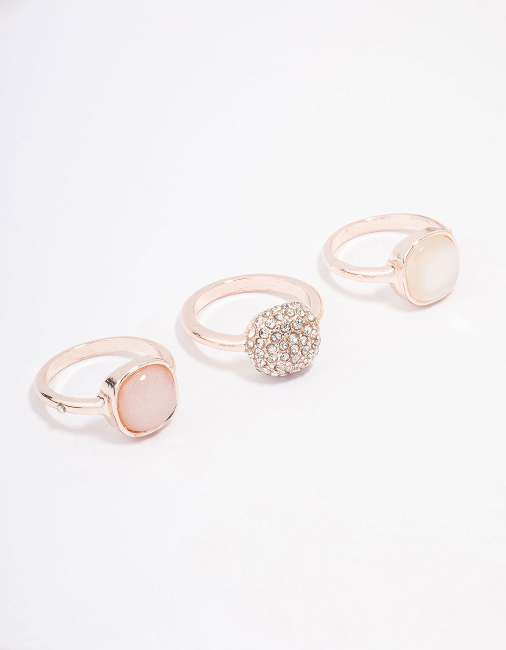 Create your dream stack with this trio of rose gold rings. This ring set includes three individual cocktial rings, each adorned with a round stone in the centre for a unique finish.