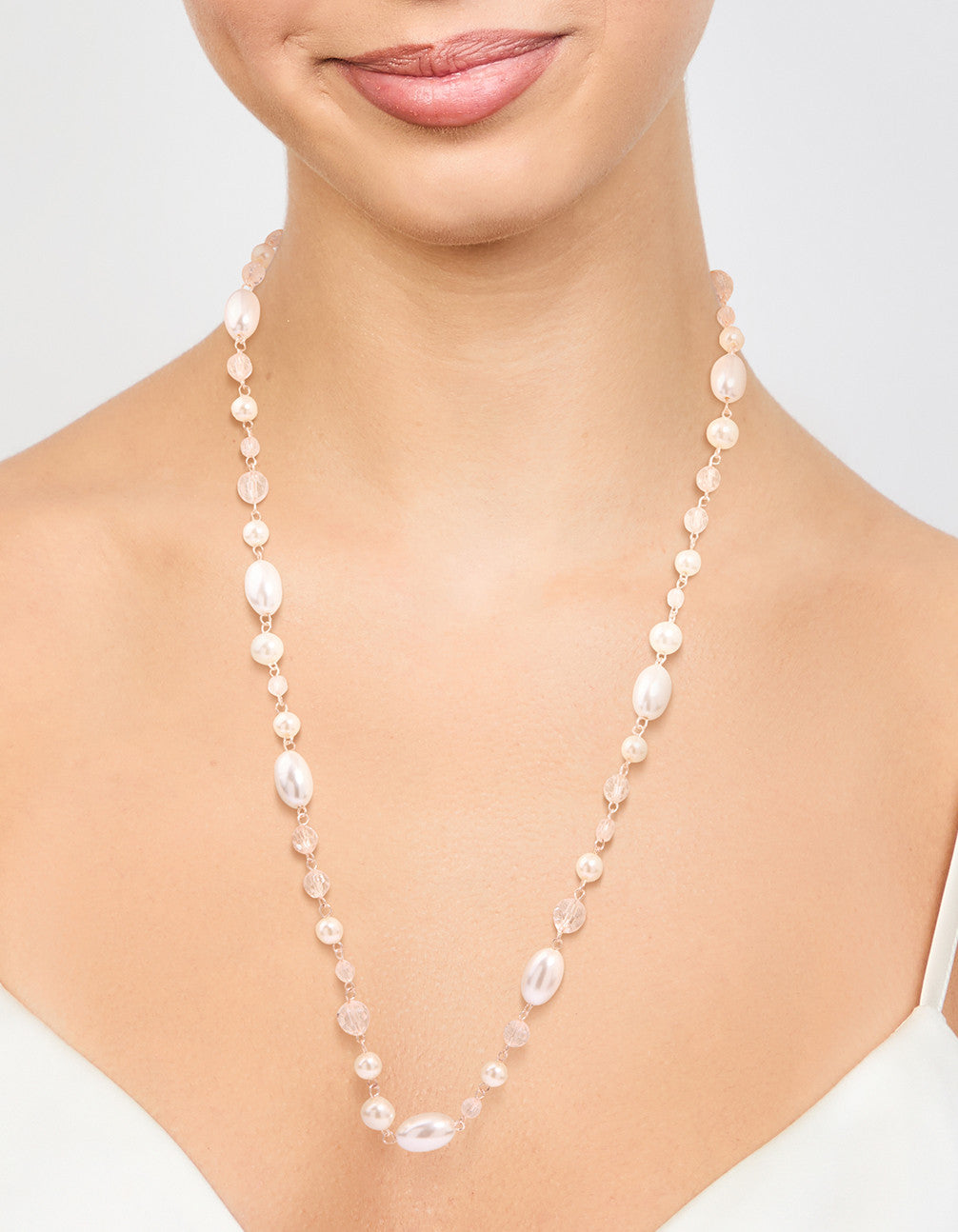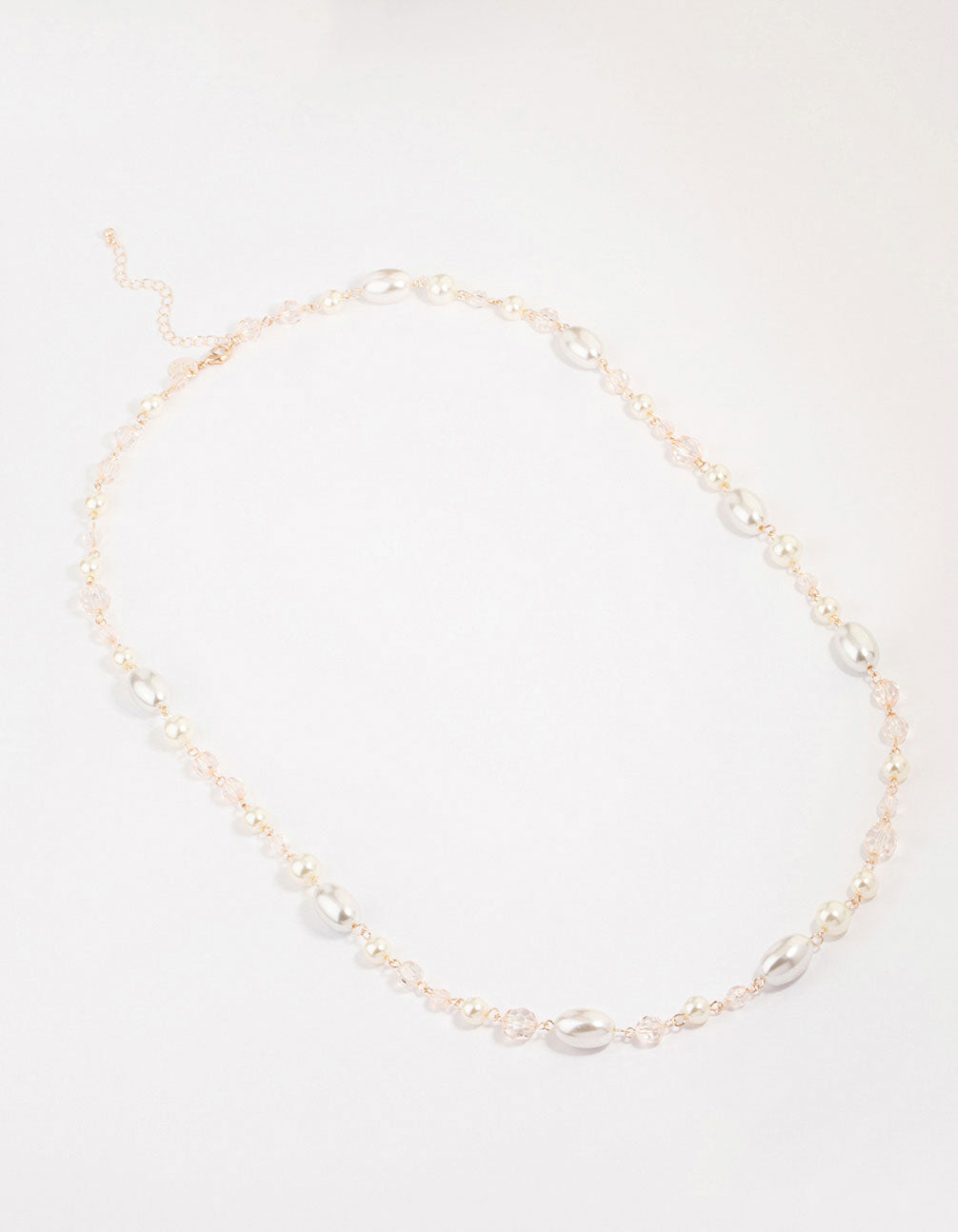 Rose Gold Pearl Beaded Long Necklace