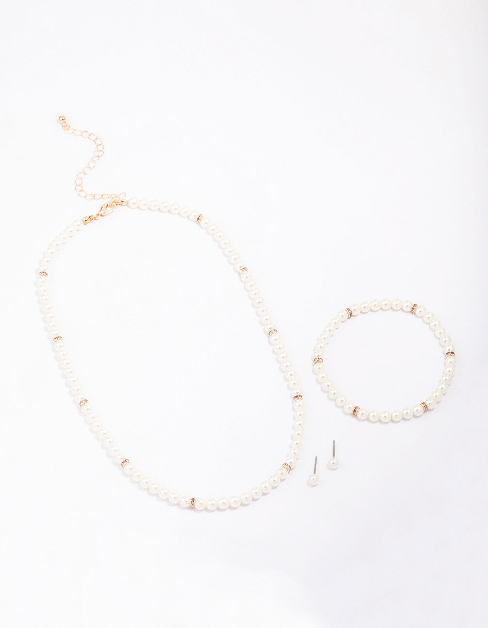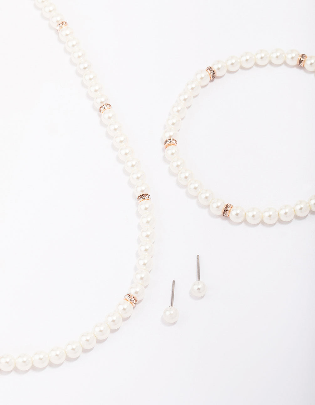 Rose Gold Pearl Necklace, Earrings & Bracelet Set