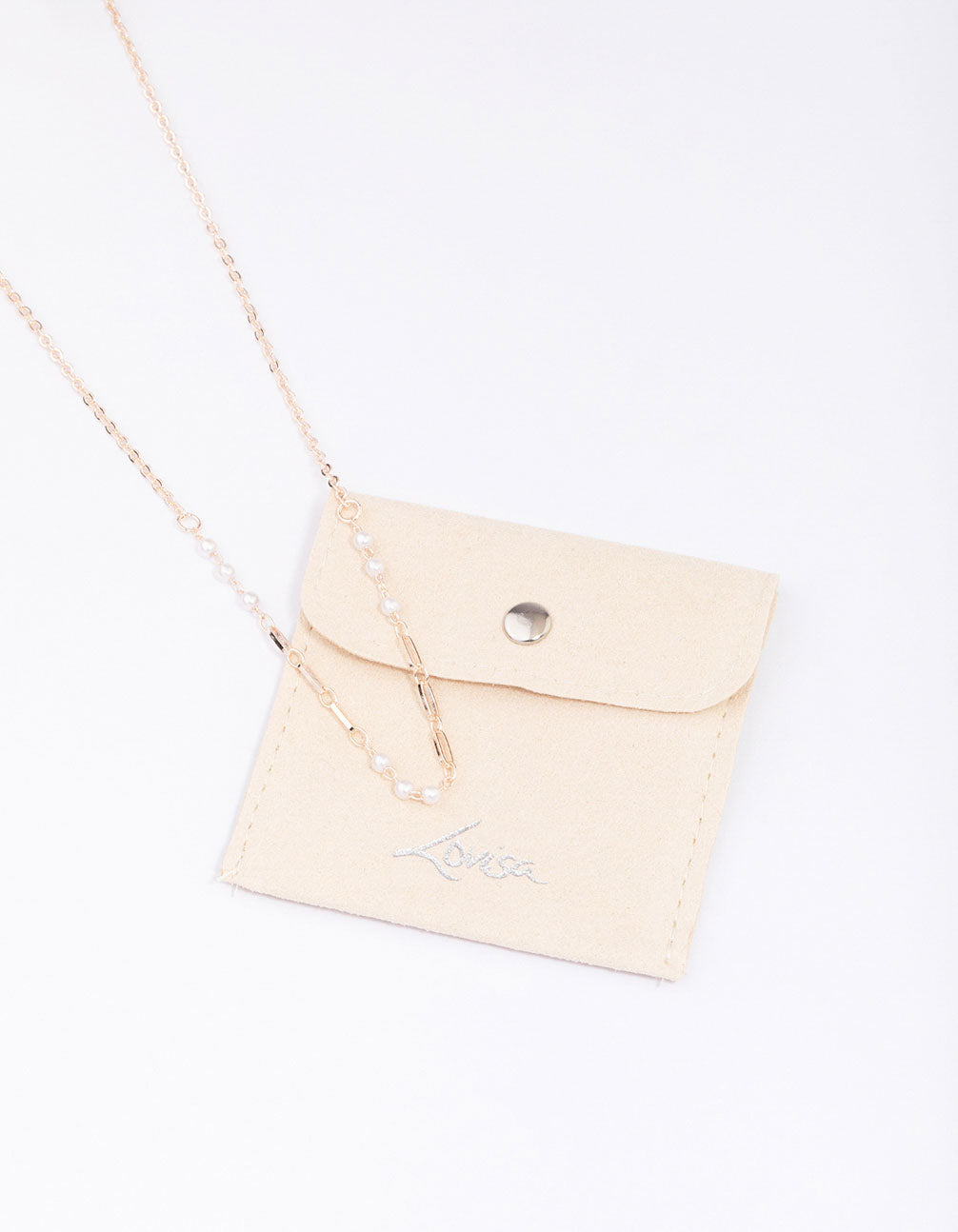 • Rose Gold Pearl & Rectangular Link Chain Necklace - link has visual effect only