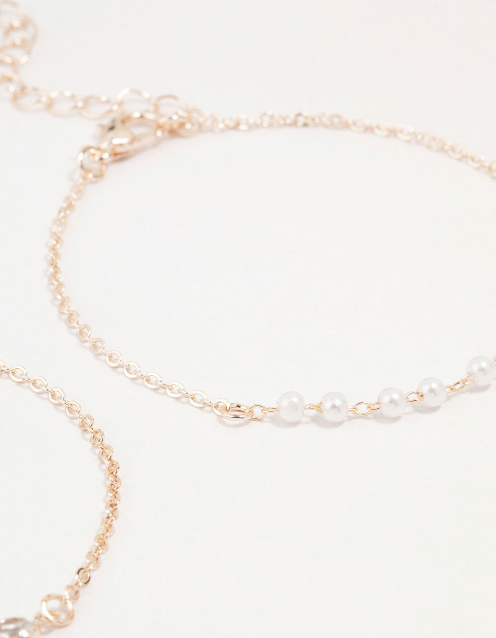 Rose Gold & Pearl Station Diamante Bracelets 2-Pack