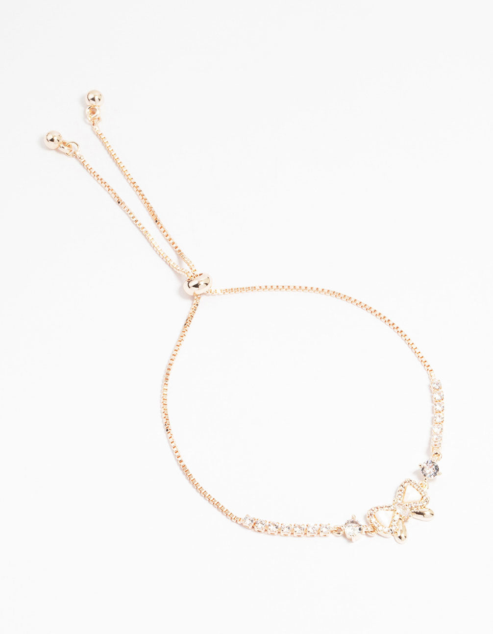 Rose Gold Plated Cubic Zirconia Bow Outline Toggle Bracelet