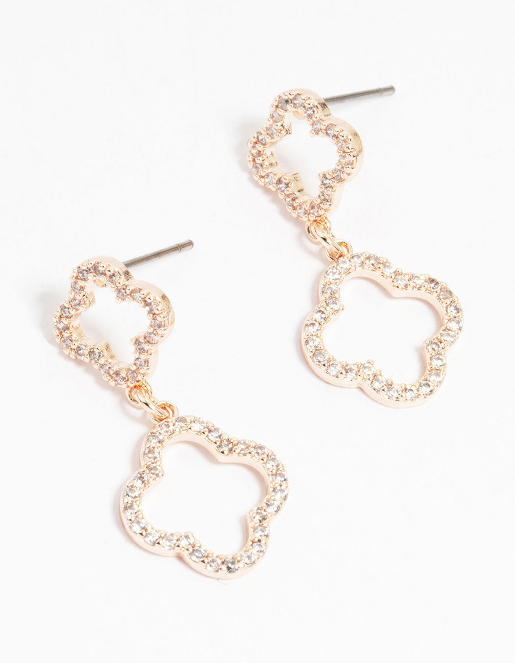 Rose Gold Plated Cubic Zirconia Double Flower Drop Earrings