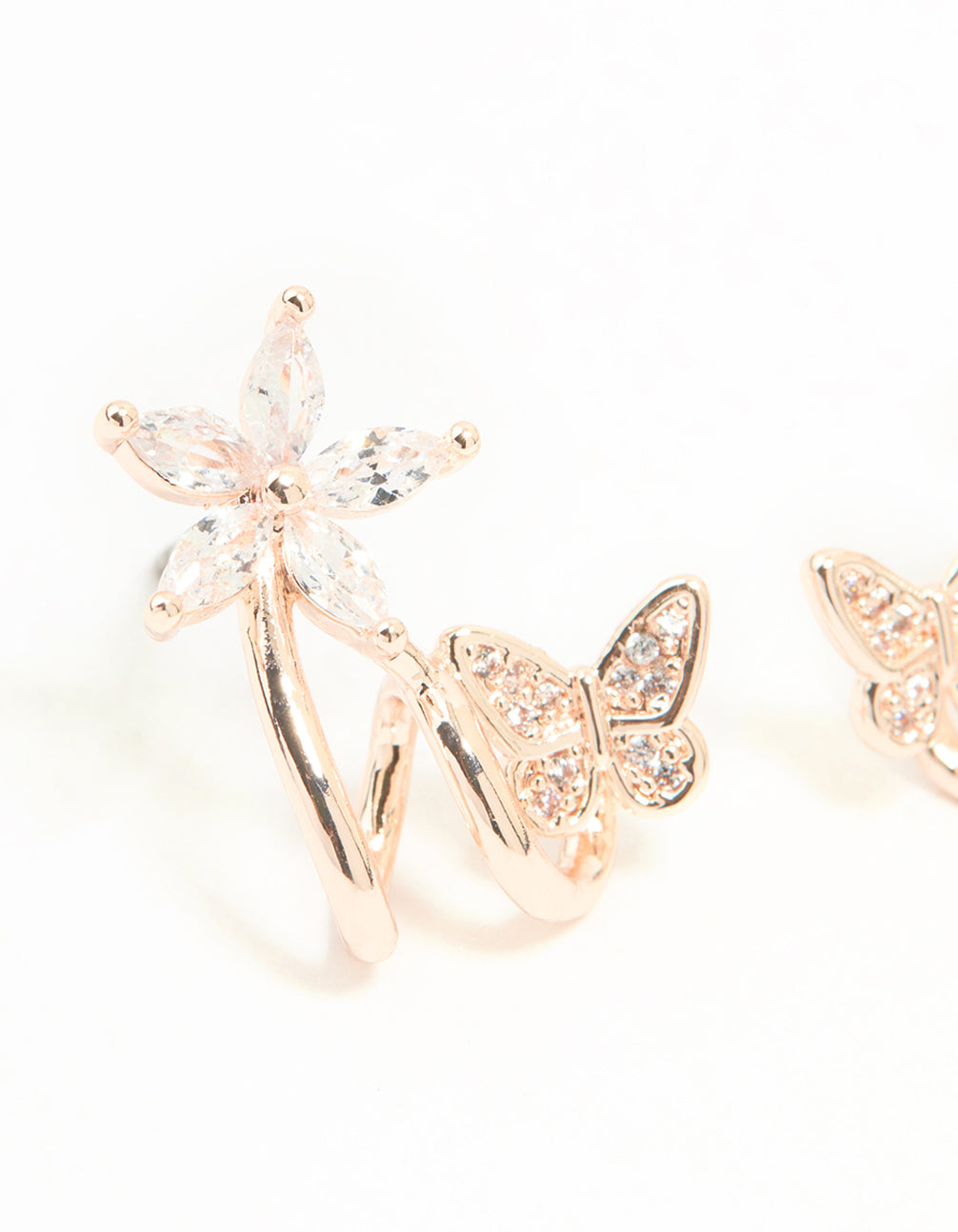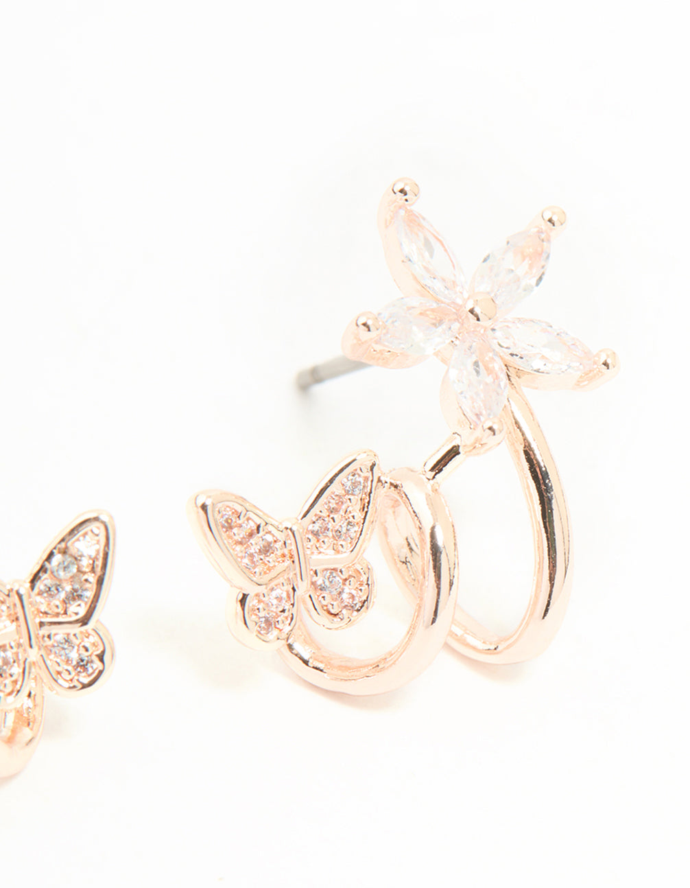 Rose Gold Plated Cubic Zirconia Flower Butterfly Ear Jacket Earrings