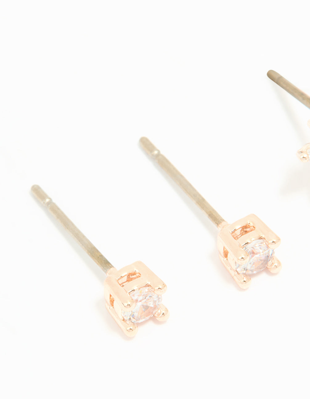 Rose Gold Plated Cubic Zirconia Flower & Classic Stud Earrings 2-Pack