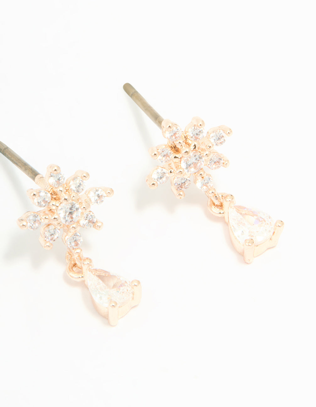 Upgrade your jewellery collection with this Rose Gold Plated Cubic Zirconia Flower & Classic Stud Earrings Pack. This versatile set includes a pair of timeless cubic zirconia stud earrings and a pair of teardrop and flower-shaped drop stud earrings, all crafted with premium rose gold plating for a luxurious finish. The sparkling cubic zirconia crystals add just the right amount of glamour, making these earrings perfect for day-to-night wear. Whether you're dressing up for a fancy dinner, heading to a wedding, or adding a touch of elegance to your everyday outfit, these earrings are your go-to accessories. Pair them with a flowy dress for a romantic vibe or with tailored trousers and a crisp blouse for polished sophistication.