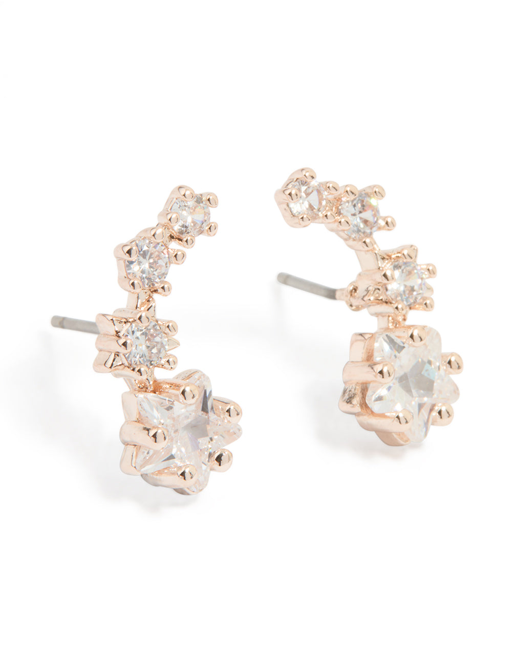 Rose Gold Plated Cubic Zirconia Graduating Star Stud Earrings