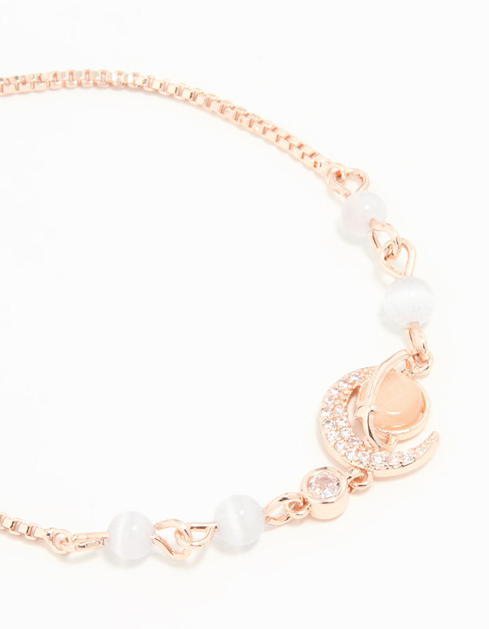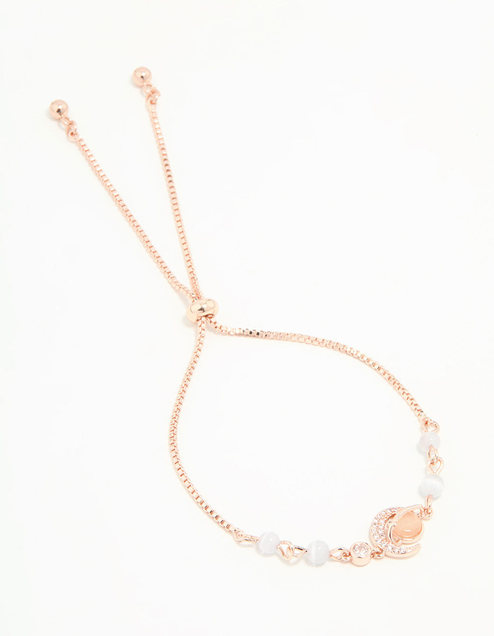 Rose Gold Plated Cubic Zirconia Moon Rose Quartz Toggle Bracelet