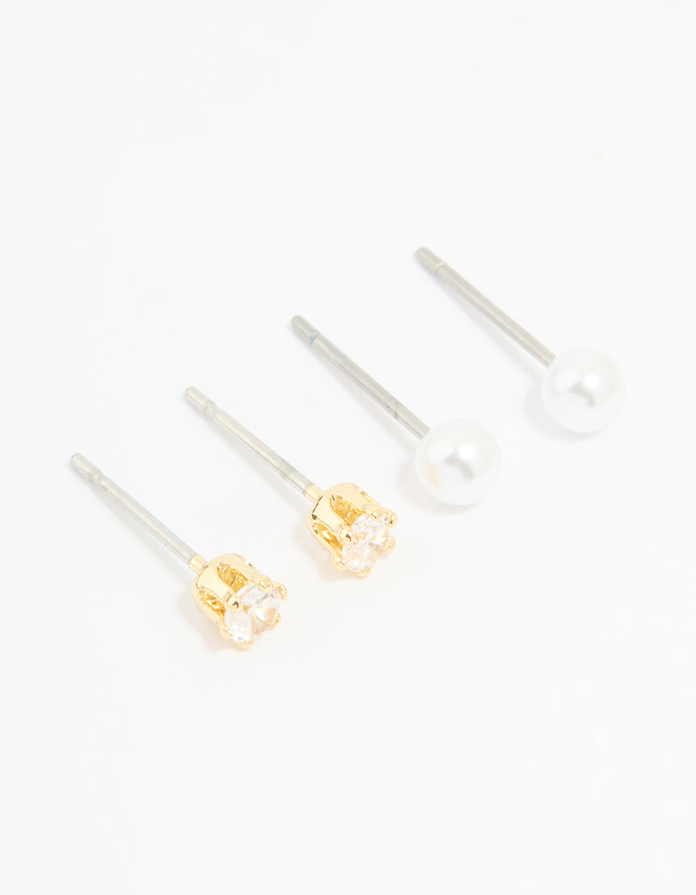 Rose Gold Plated Cubic Zirconia Pearl & Classic Stud Earrings 2-Pack