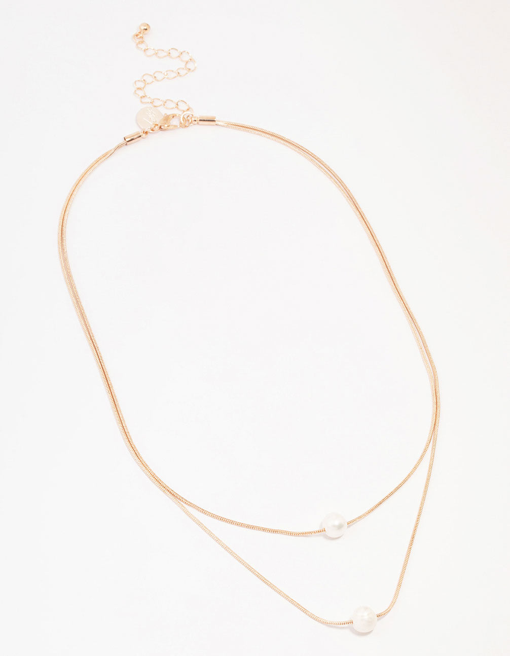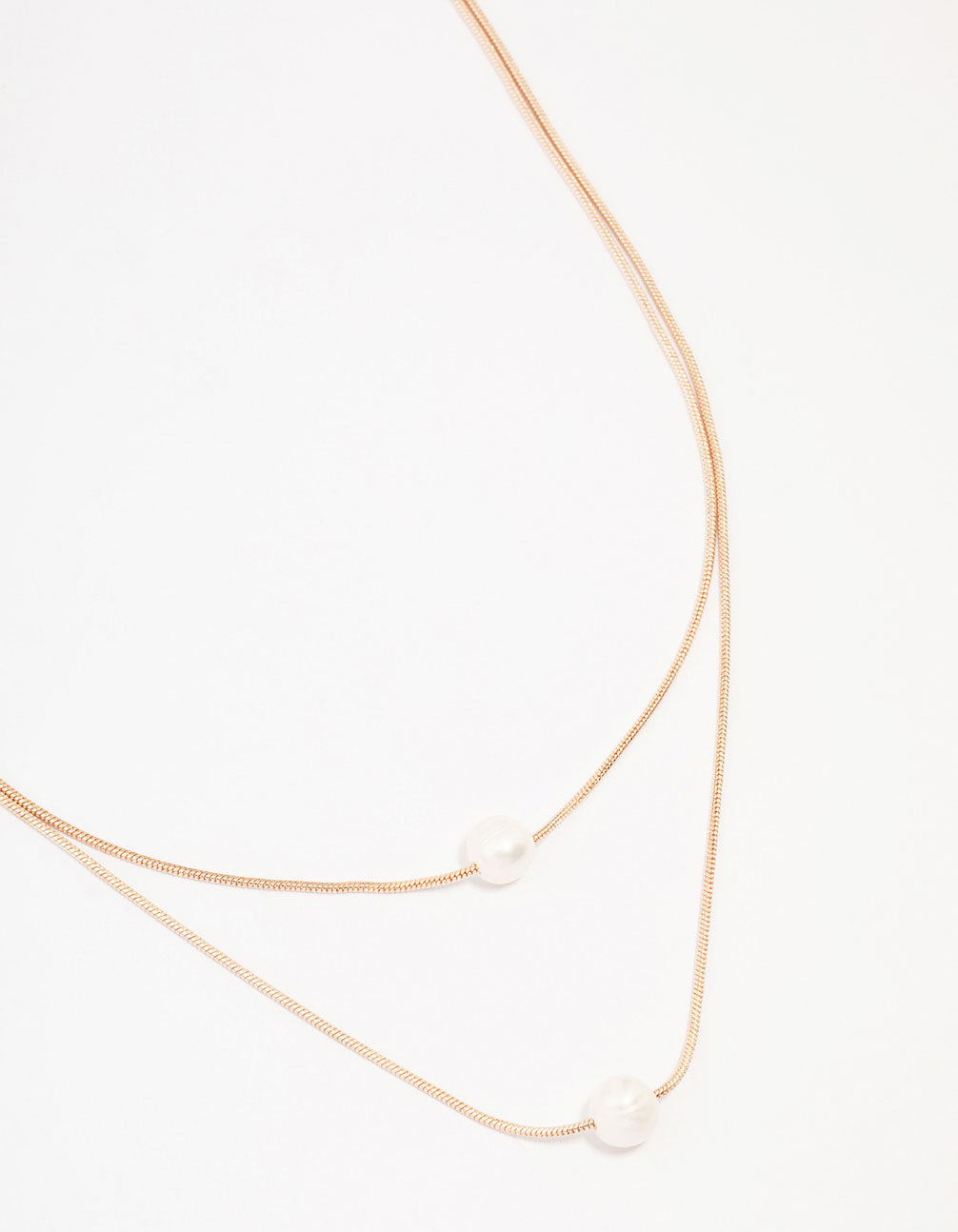 For a refined addition to your stack, style this rose gold plated necklace. This dainty chain necklace features two layers, adorned with minimalist freshwater pearl accents.
