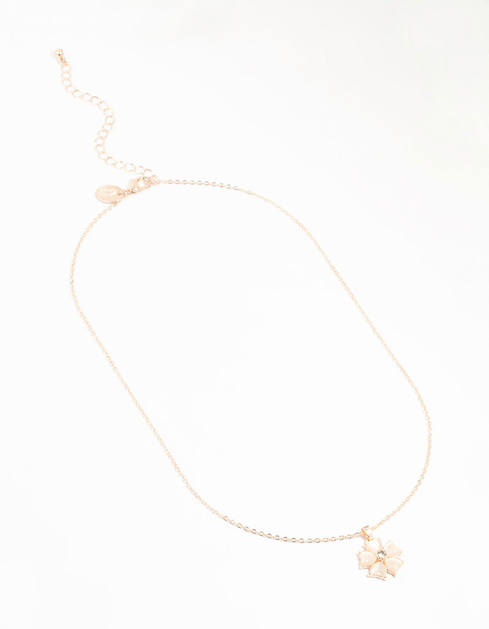 Enchant with this garden inspired rose gold necklace. This necklace features a rich rose gold toned base and gorgeous floral pendant for that touch of floral glam.