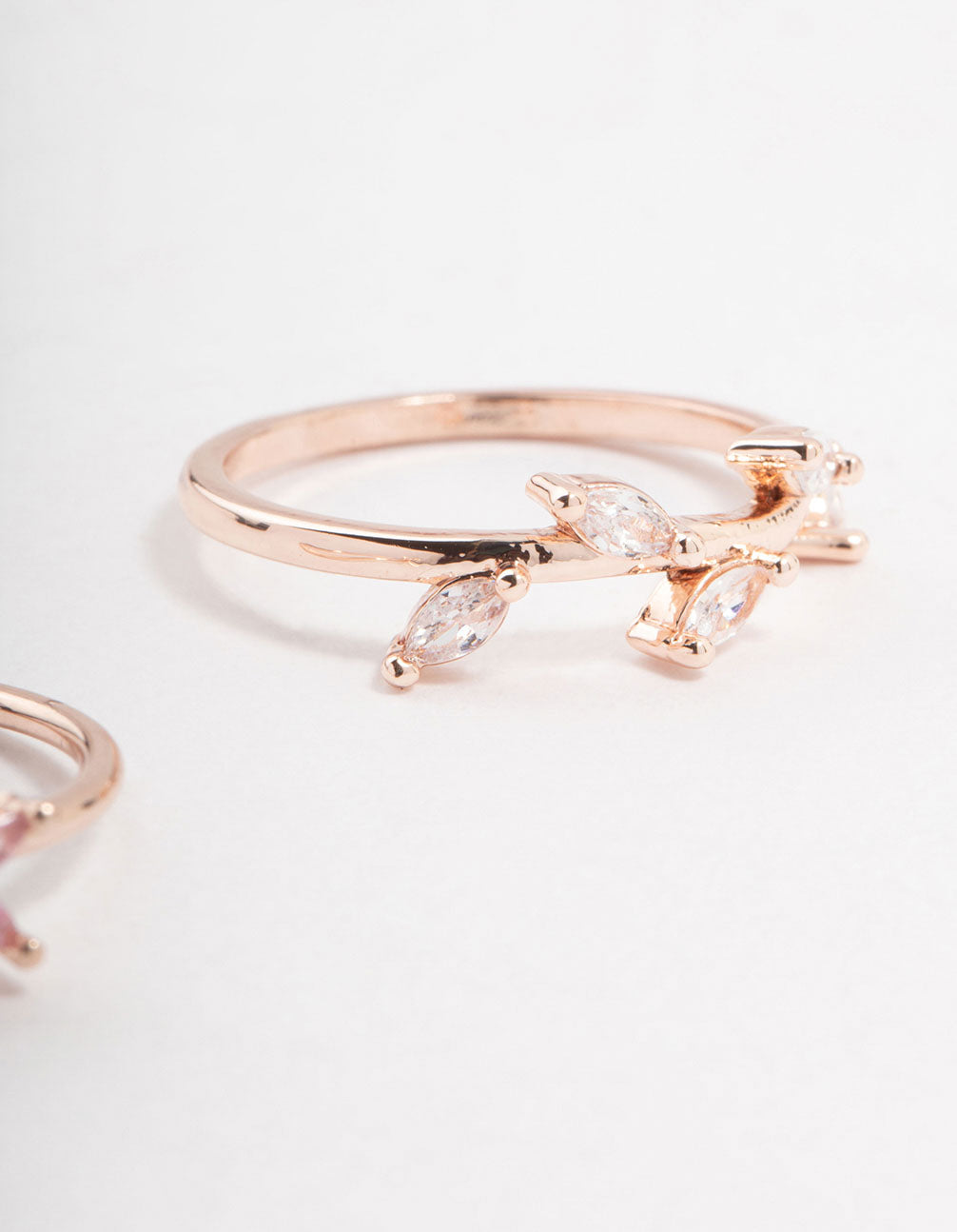 Rose Gold Flower Vine Cubic Zirconia Rings 2-Pack