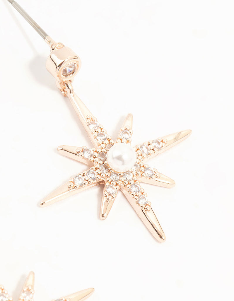 Rose Gold Plated Star Crystal Pearl Drop Earrings