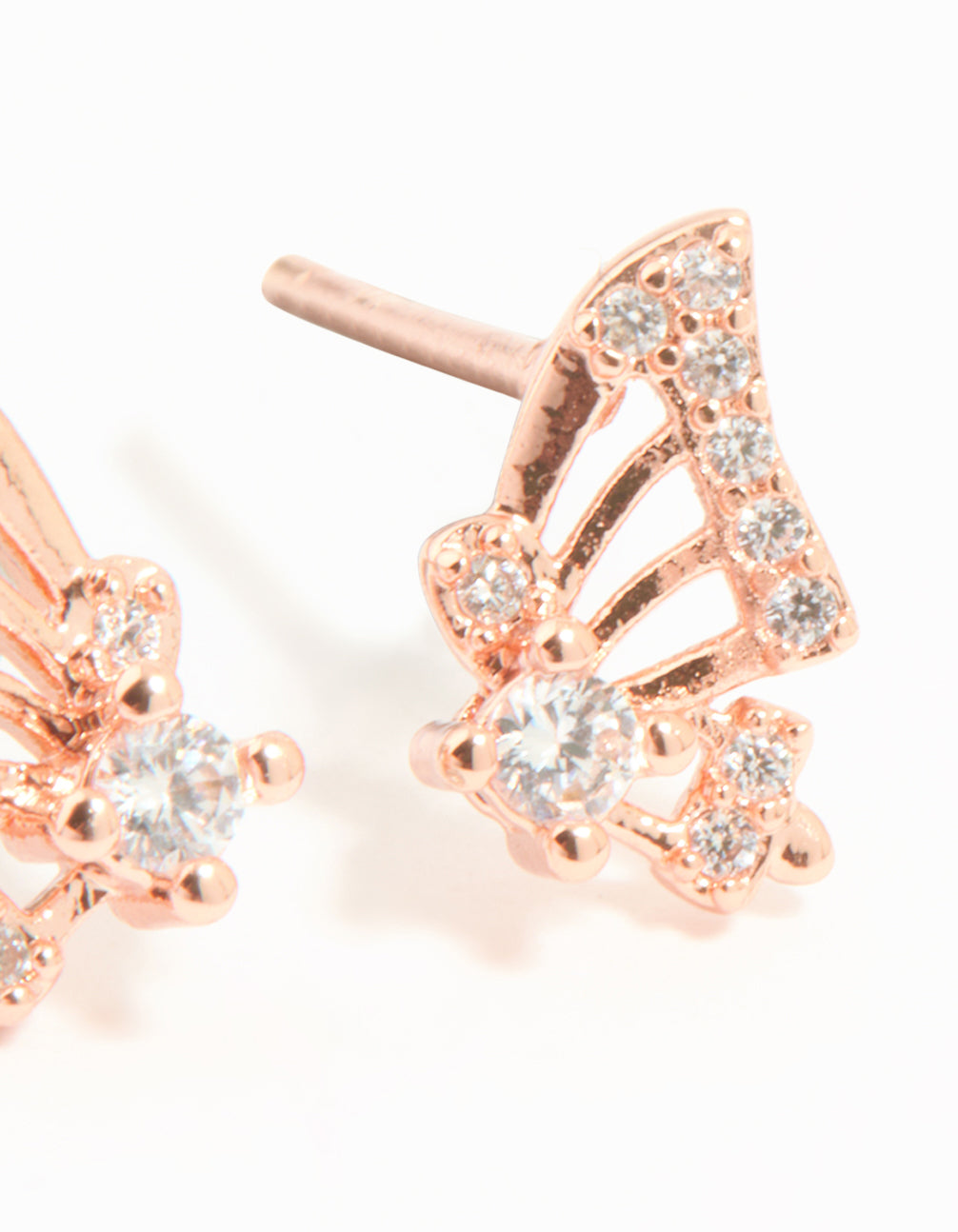 Rose Gold Plated Sterling Silver Cubic Zirconia Butterfly Wing Stud Earrings