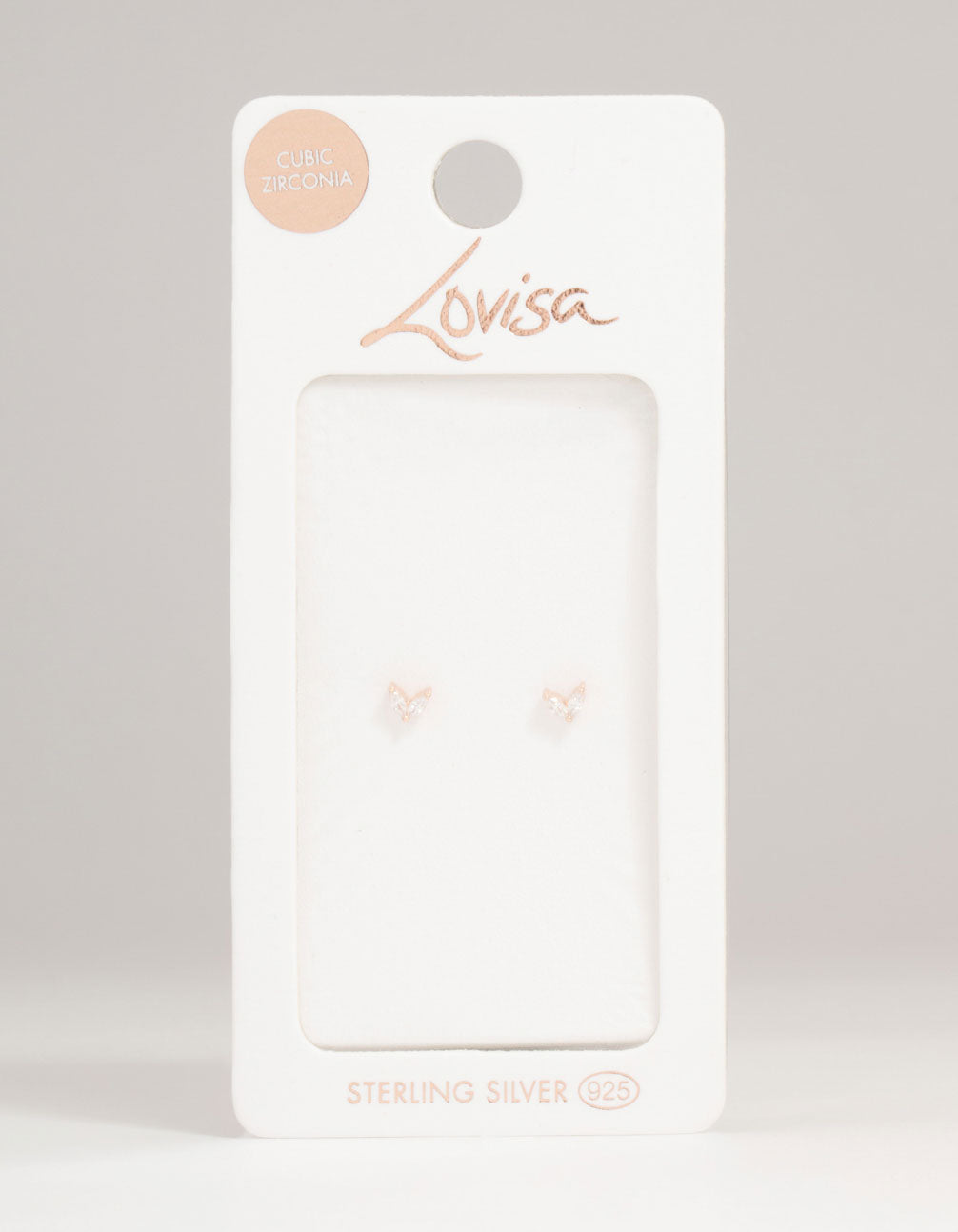 Rose Gold Plated Sterling Silver Cubic Zirconia Dolphin Tail Stud Earrings