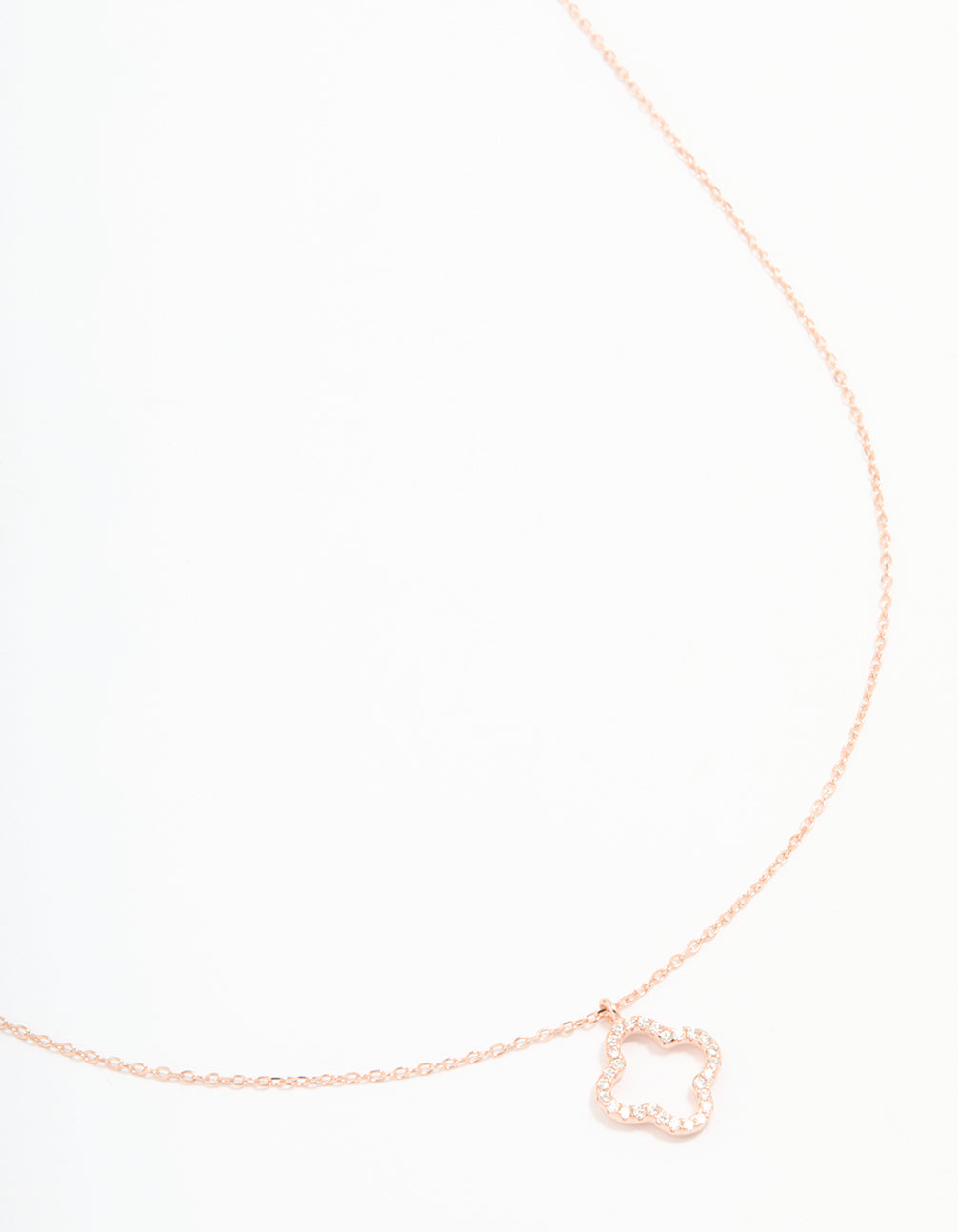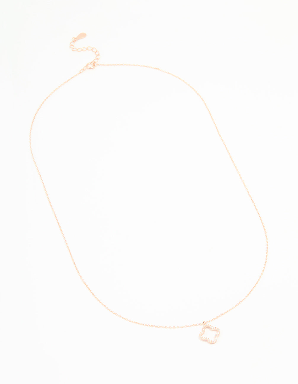 Rose Gold Plated Sterling Silver Cubic Zirconia Flower Pendant Necklace