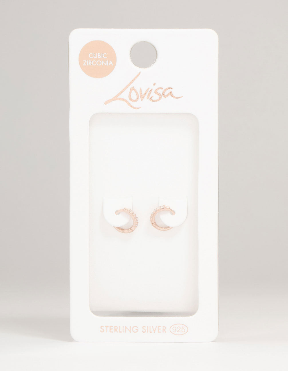 Rose Gold Plated Sterling Silver Cubic Zirconia Huggie Earrings