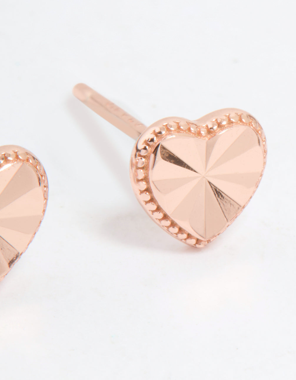 Rose Gold Plated Sterling Silver Textured Heart Stud Earrings