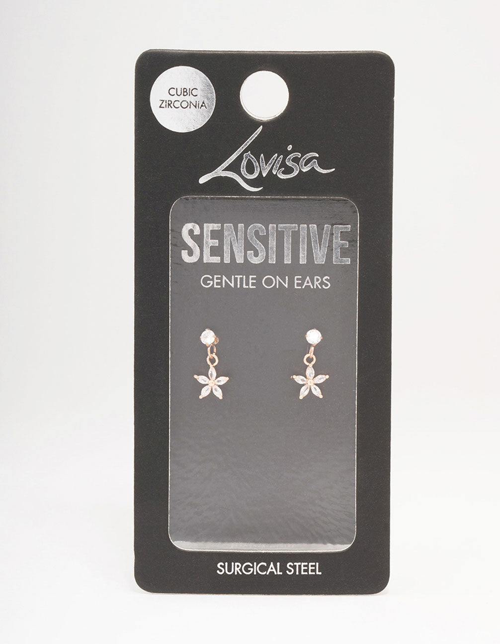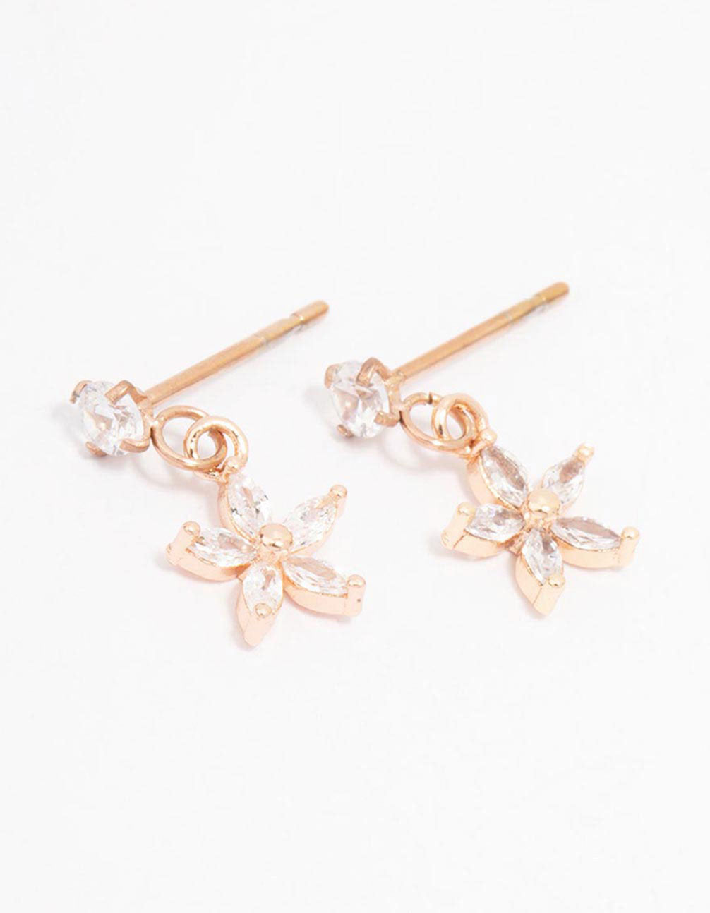 Rose Gold Plated Surgical Steel Cubic Zirconia Flower Drop Stud Earrings
