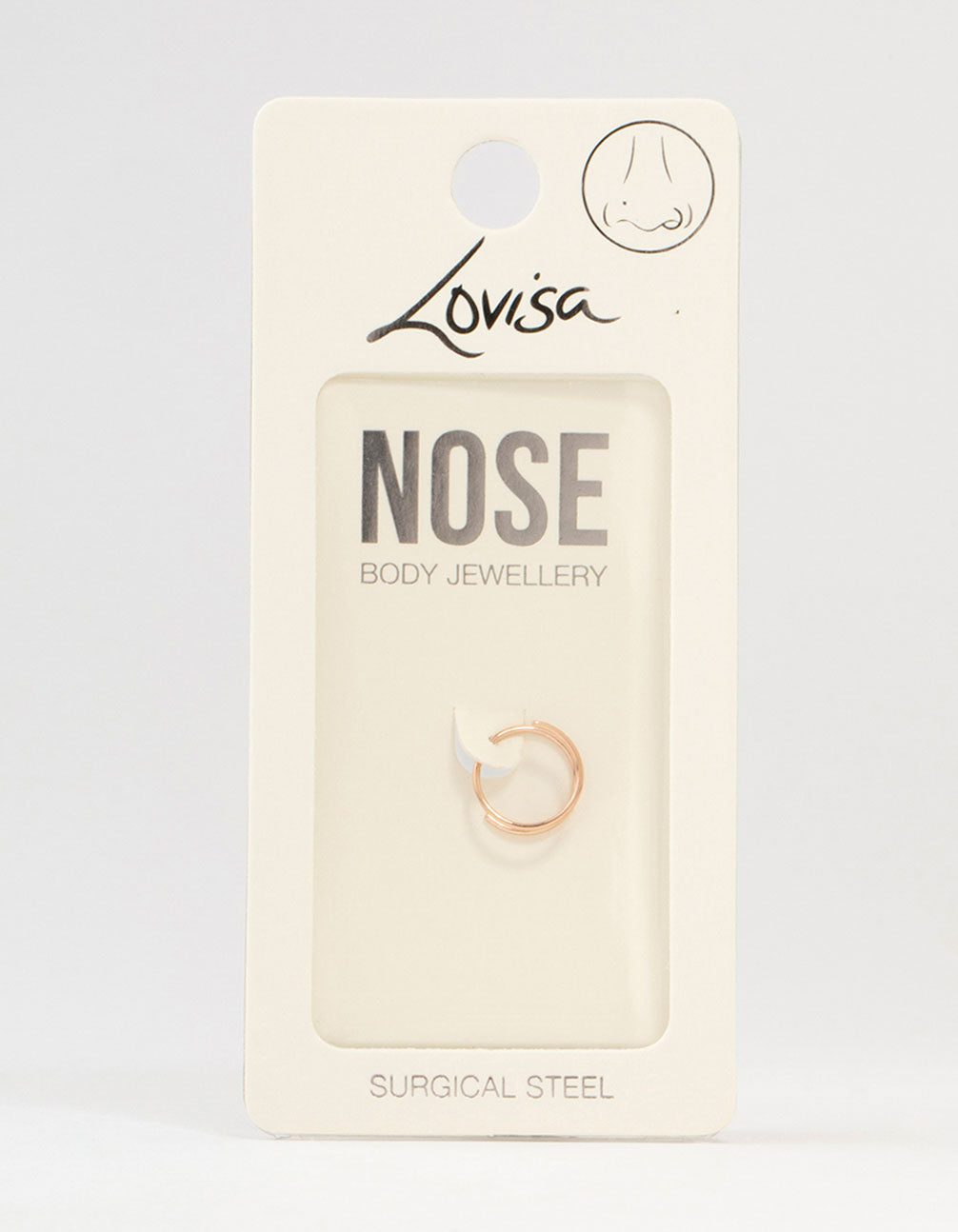 Upgrade your look with this rose gold-plated surgical steel nose ring featuring a sleek double-twisted design. Perfect for the style-savvy, this nose piercing can complement any aesthetic.