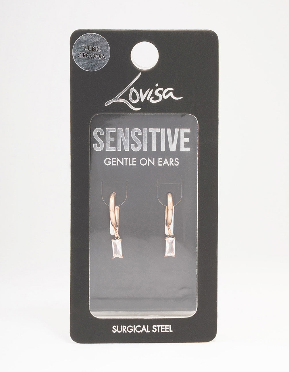 Rose Gold Plated Surgical Steel Square Cubic Zirconia Hoop Earrings