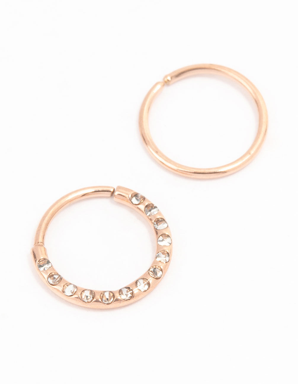 Change things up with a new nose piercing. This pack of two rose gold plated surgical steel nose rings is perfect for adding some fun to your look, the rose gold plating adds a super flattering finish and the shimmery cubic zirconia stones add glam.
