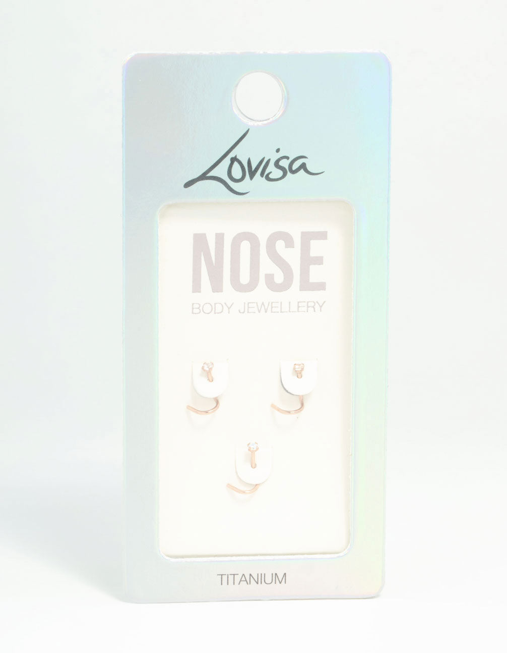 Rose Gold Plated Titanium Light Stone Nose Studs 3-Pack