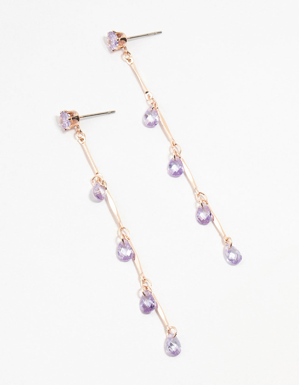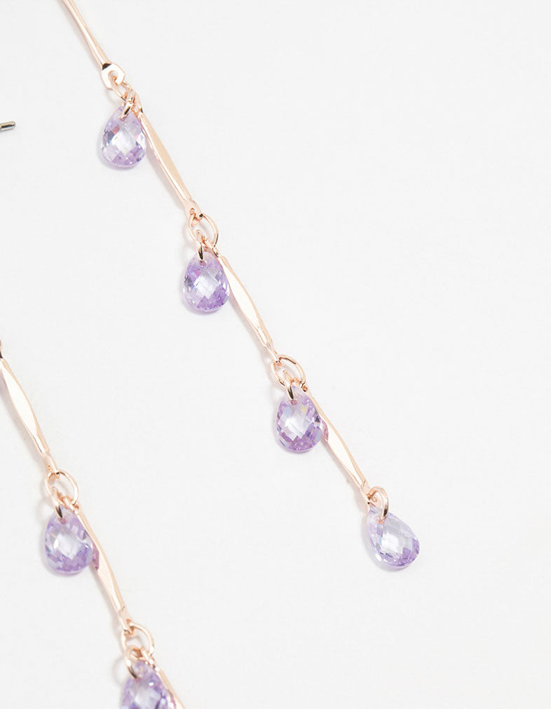 Rose Gold Purple Cubic Zirconia Droplet Drop Earrings