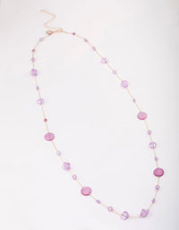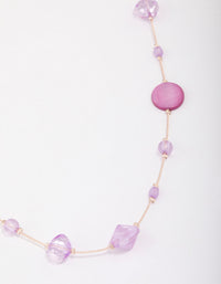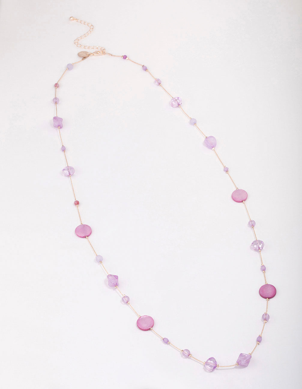 This simple station necklace features a collection of purple beads and stones for an embellished look.