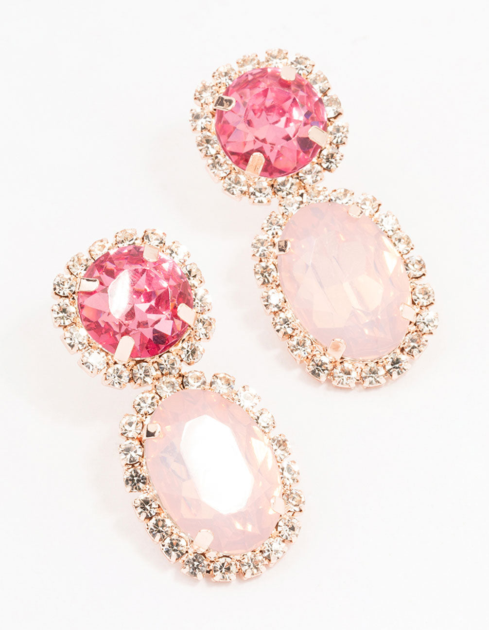 These elegant rose gold drop earrings are a stylish addition to your everyday wardrobe. Dangling from rose gold hoops, they feature sparkling stones that shimmer beautifully in the light. Perfect for adding glam to your outfits.