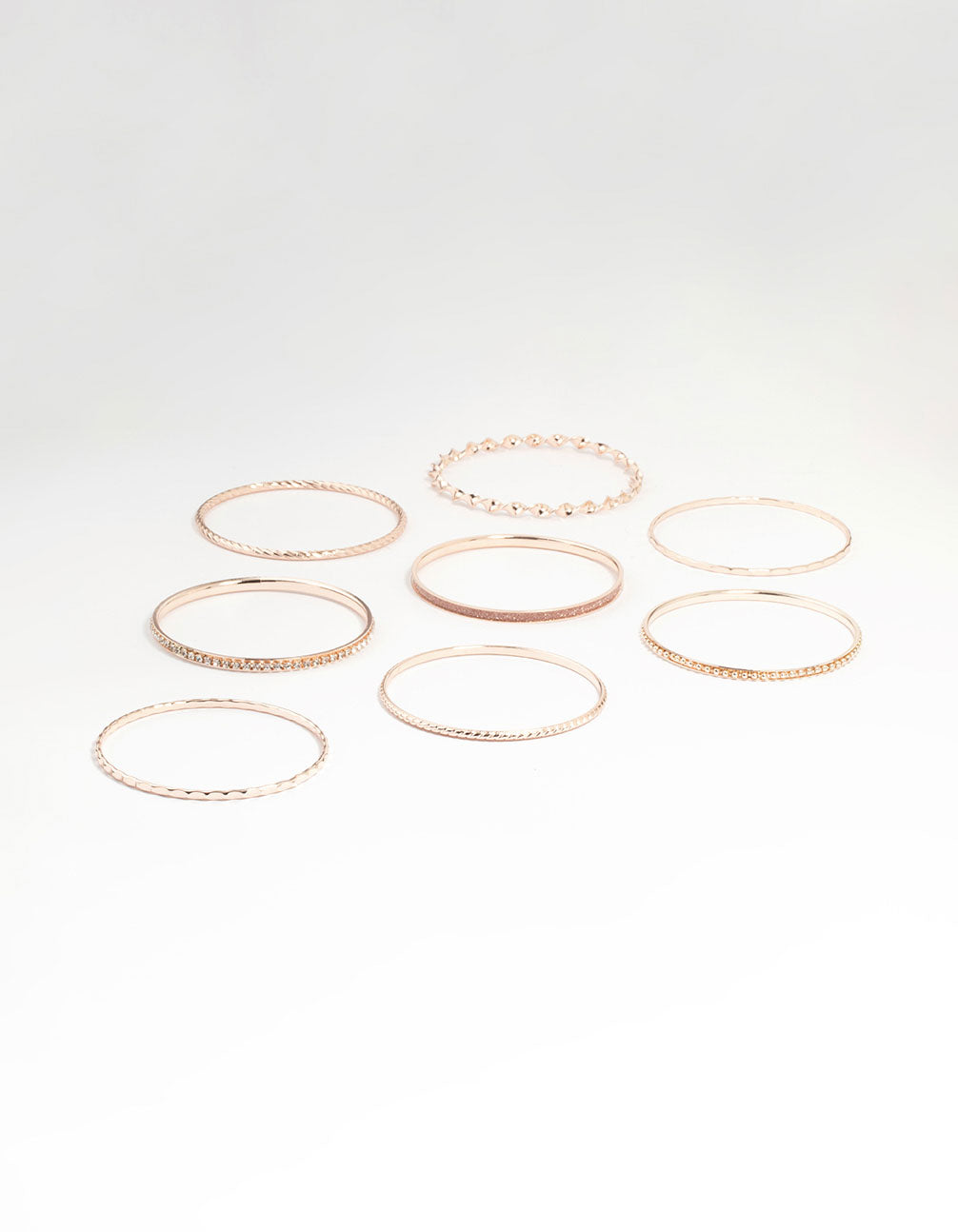 Elevate your accessory game with this Rose Gold Textured Bangles pack.This set is crafted in a chic rose gold tone, featuring a mix of sleek and textured designs that bring versatility to your jewellery collection.