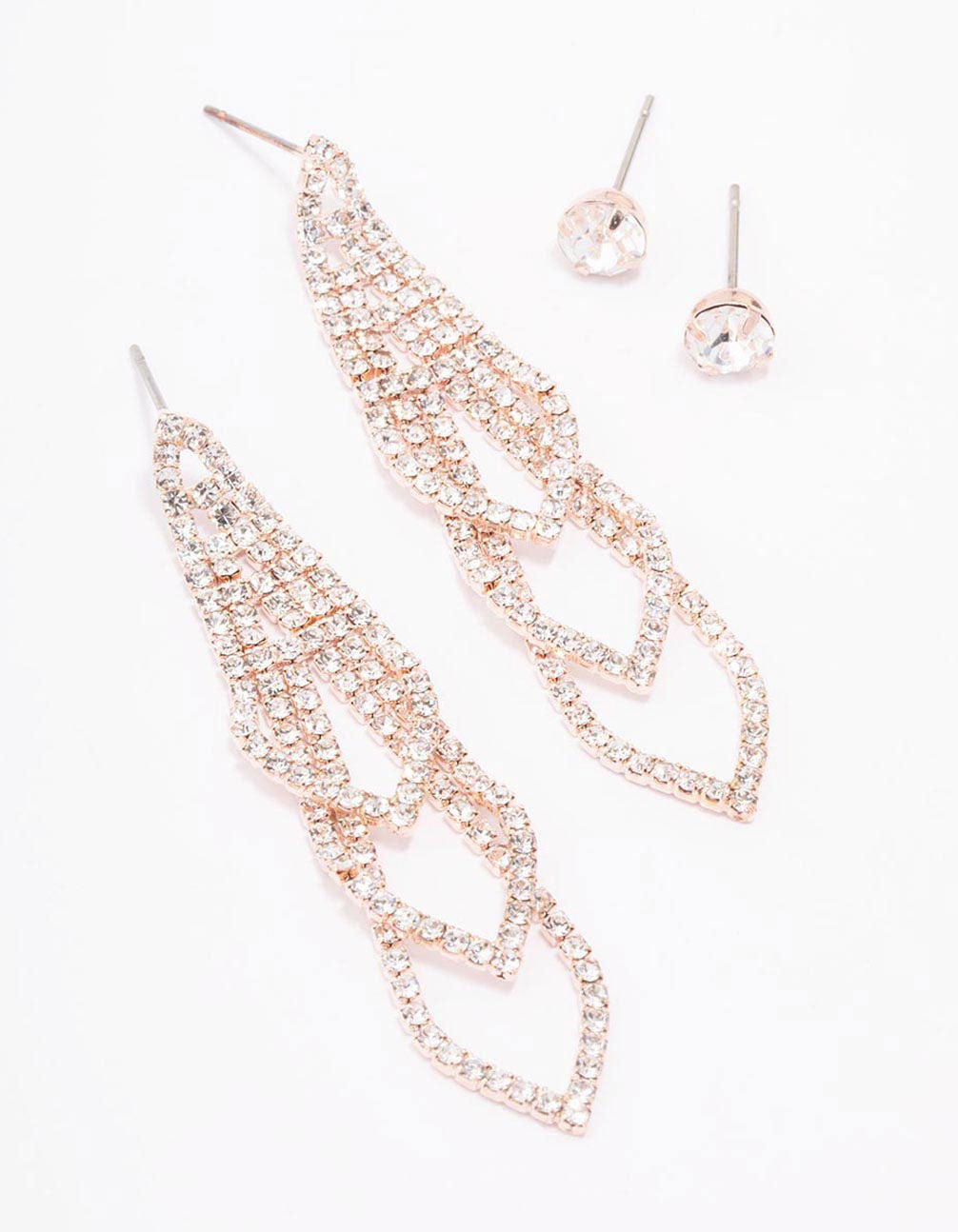Channel Old Hollywood Glamour with this duo of rose gold earrings. This earring pack includes two pairs of earrings, including diamante-encrusted drop earrings and a pair of adorning studs.